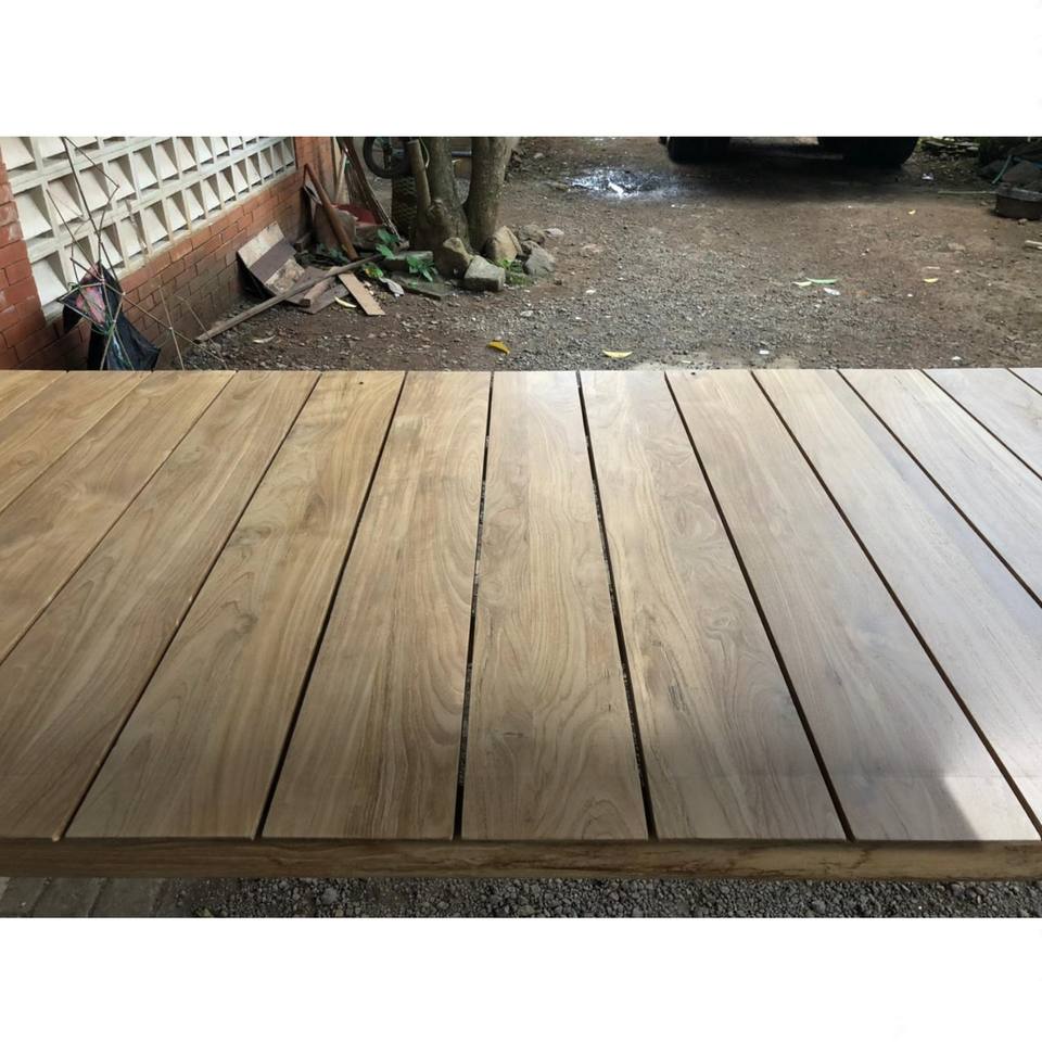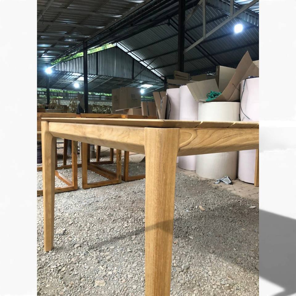 โต๊ะรับประทานอาหารไม้สักทรงสี่เหลี่ยมพร้อมท็อปไม้ระแนง