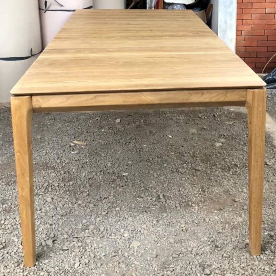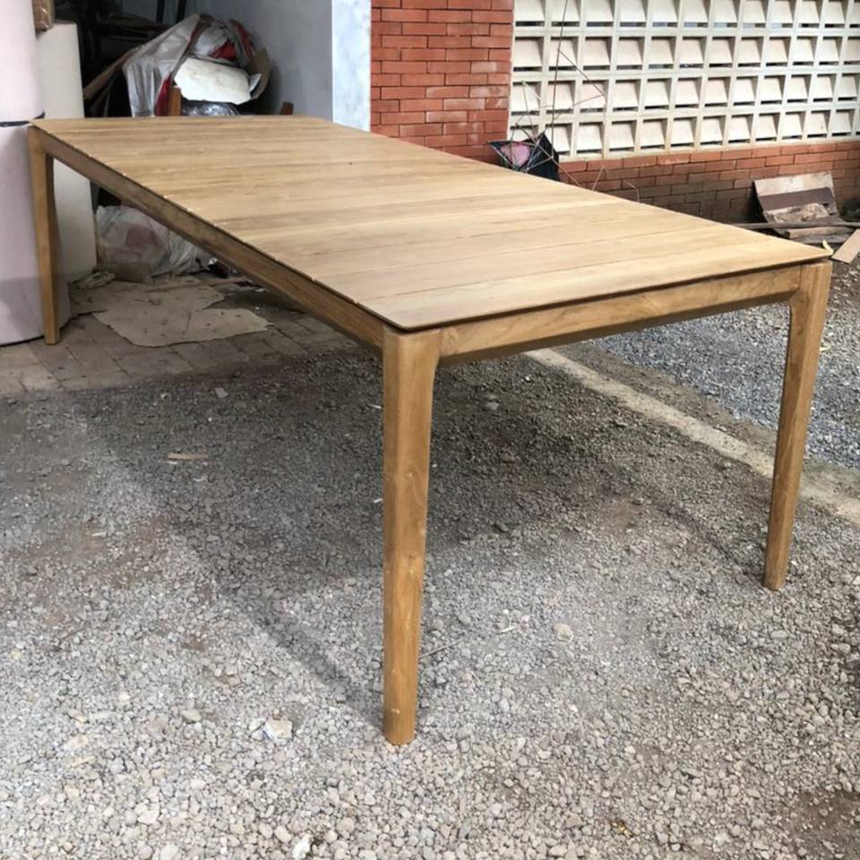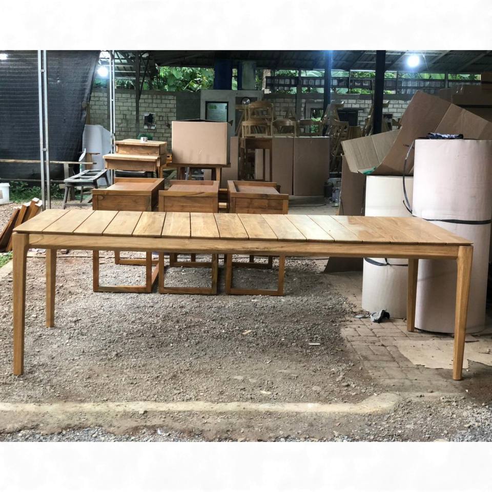 โต๊ะไม้สักแบบมินิมอล โต๊ะรับประทานอาหารกลางแจ้งขนาดใหญ่ รองรับ 8 หรือ 10 ที่นั่ง โต๊ะยาวสำหรับสวน เหมาะสำหรับวิลล่า รีสอร์ท ลานบ้าน โครงการ
