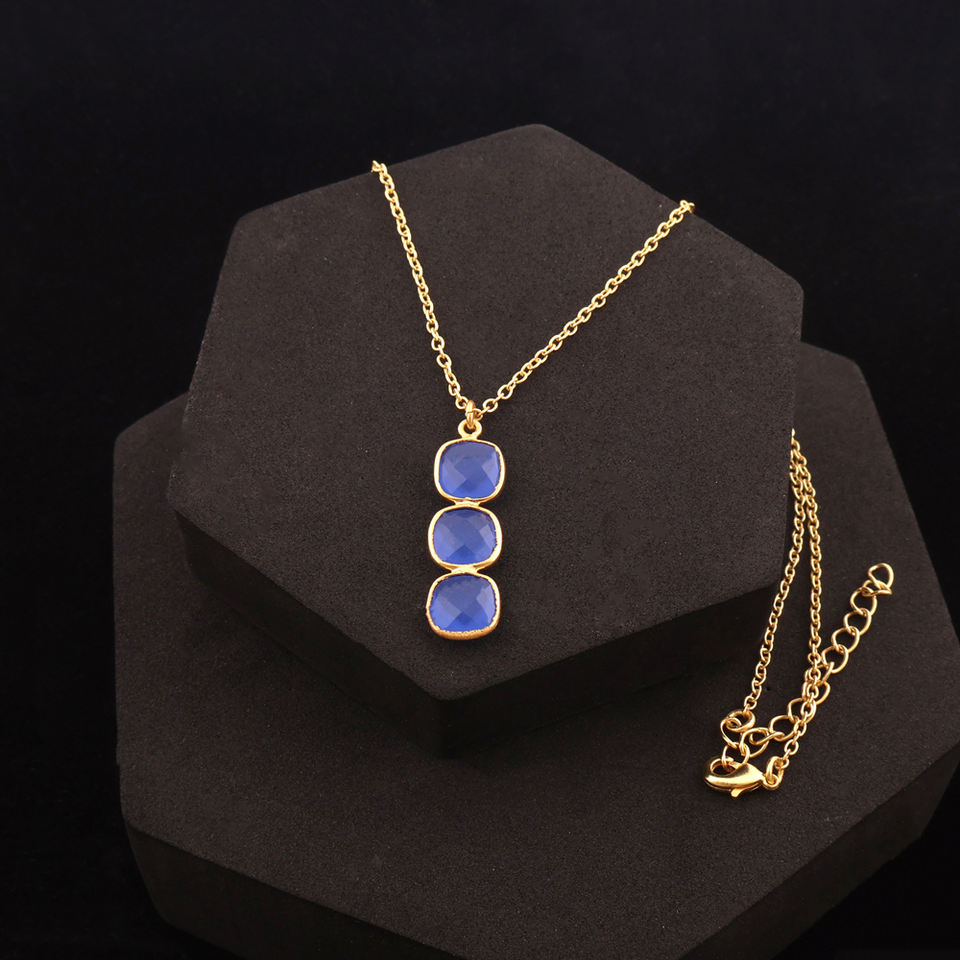 มินิมอลสามพลอยสร้อยคอตรวจสอบตัดสีฟ้าชอลซิโด้นี่ยิงวางสร้อยคอจี้ทองเหลือง18พันชุบทองสร้อยคอโซ่สายเคเบิล
