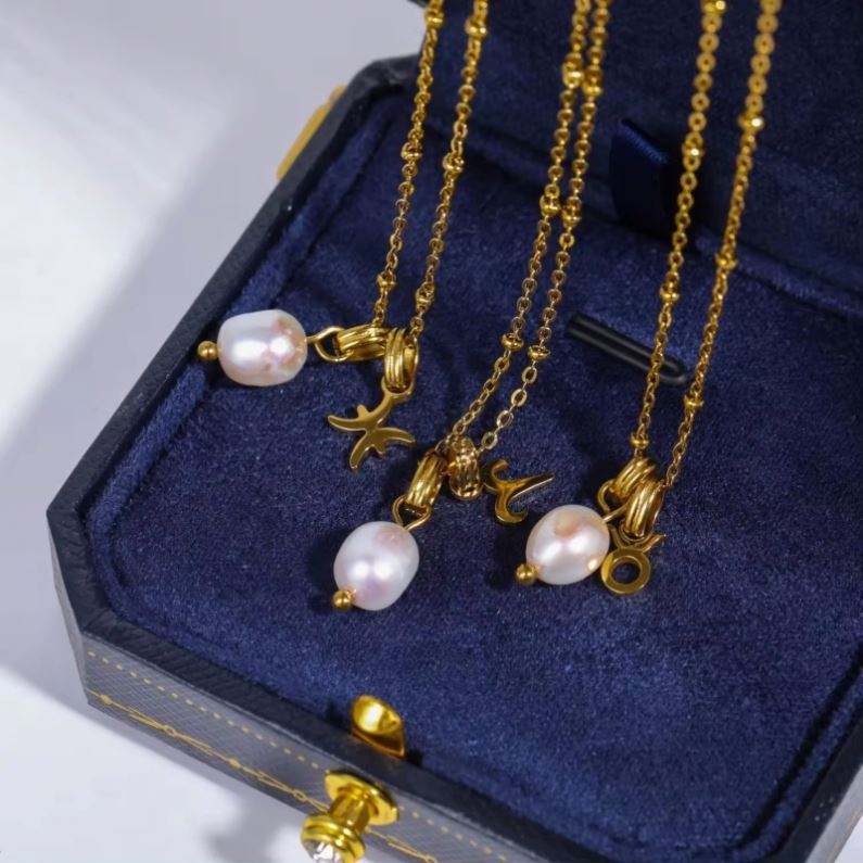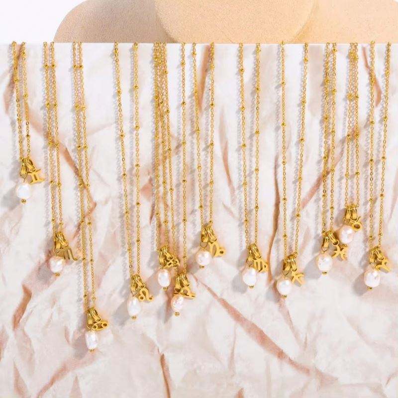สร้อยคอจักรราศีเล็กๆสีทองแบบมินิมอลลิสต์สร้อยข้อมือสแตนเลสสตีล18K สร้อยคอประดับไข่มุกของขวัญวันเกิด