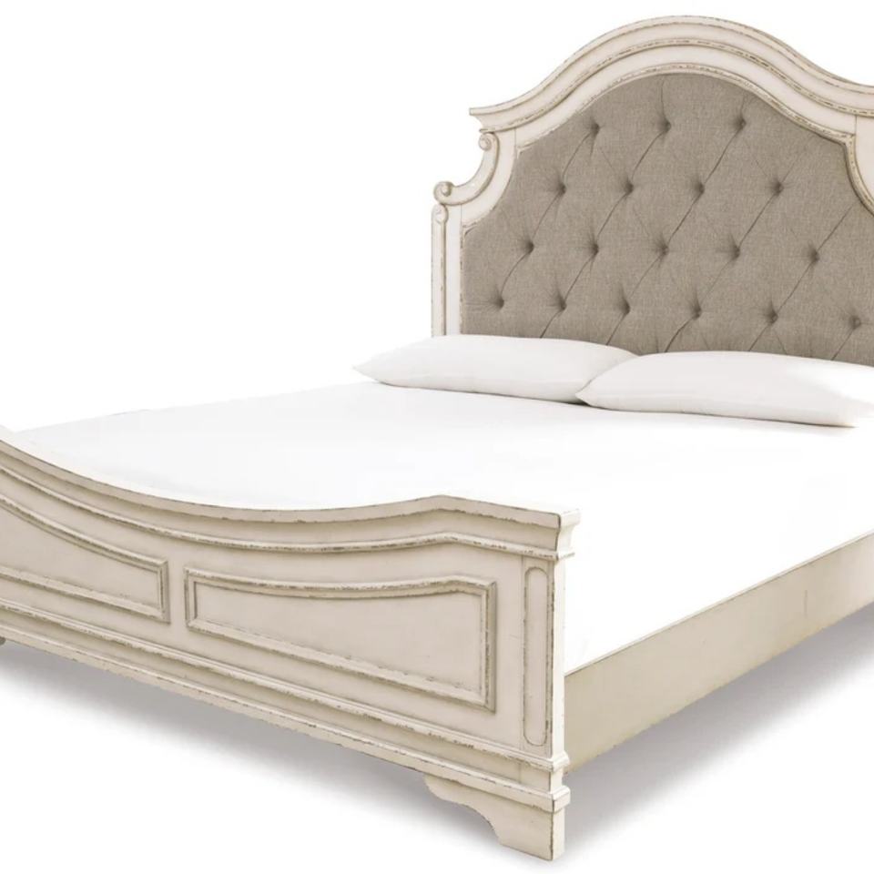 เตียงคิงไซส์ไม้เนื้อแข็งแบบมินิมอลสไตล์ดั้งเดิม ปรับระดับได้ โครงสีขาวแกะสลักด้วยมือ พร้อมผ้าหุ้มพนักพิงดีไซน์สำหรับห้องนั่งเล่น