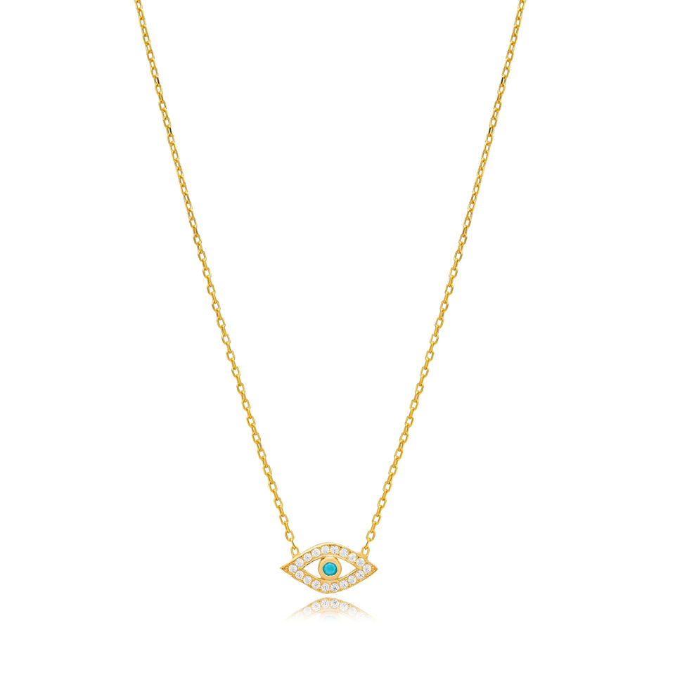 สร้อยคอเซอร์คอนสีเทอร์ควอยซ์นำโชคแบบตุรกีเครื่องประดับเงินสเตอร์ลิงสำหรับ925