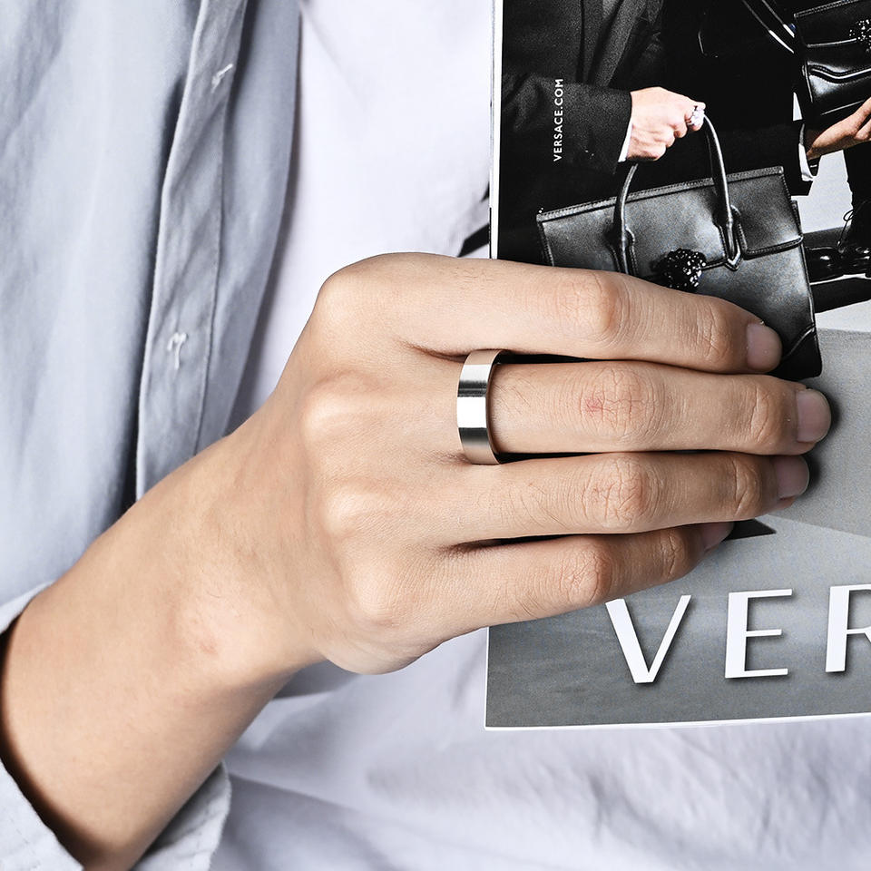 แหวนไทเทเนียมสตีลขัดด้านขนาด 6 มม. สไตล์มินิมอลสำหรับทุกเพศ เหมาะสำหรับเป็นของขวัญแฟชั่น