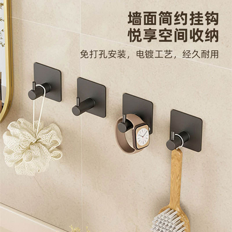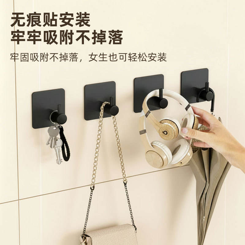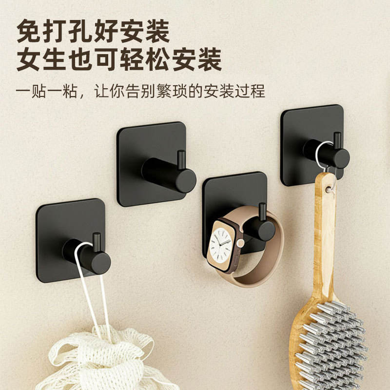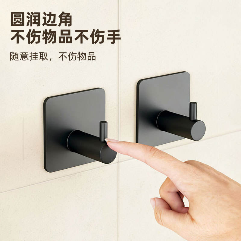 ตะขอแขวนผนังแบบมินิมอล สีดำ แพ็ค 4 ชิ้น ติดตั้งด้วยกาว ไม่ต้องเจาะผนัง ใช้แขวนเสื้อผ้าในห้องน้ำ หรือเก็บกุญแจ