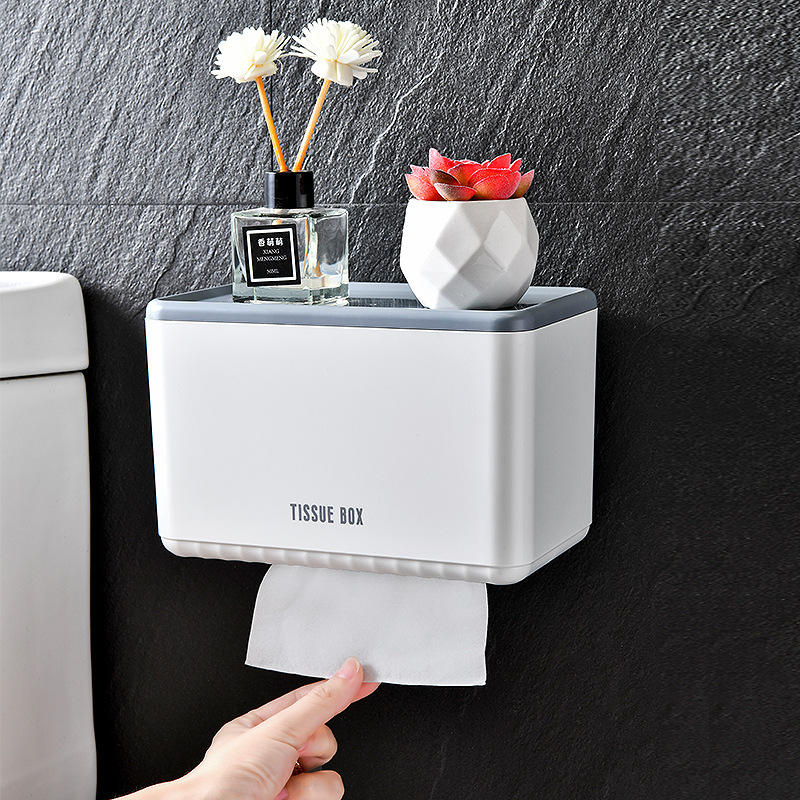 กล่องกระดาษทิชชู่ติดผนังแบบมินิมอล พลาสติกทรงสี่เหลี่ยม ไม่ต้องเจาะ ดีไซน์สีสันตัดกัน