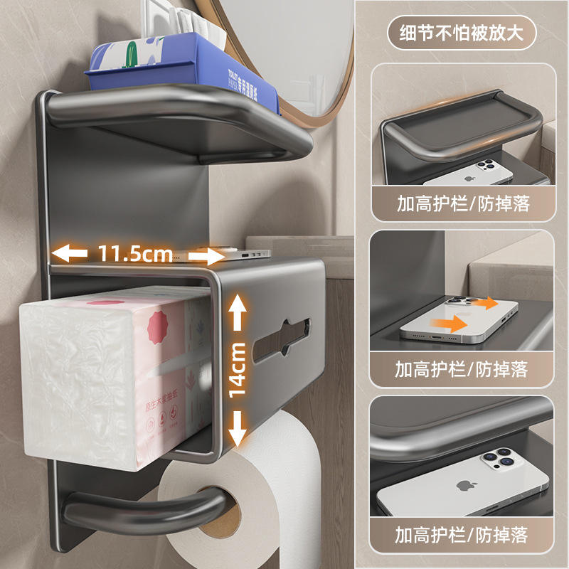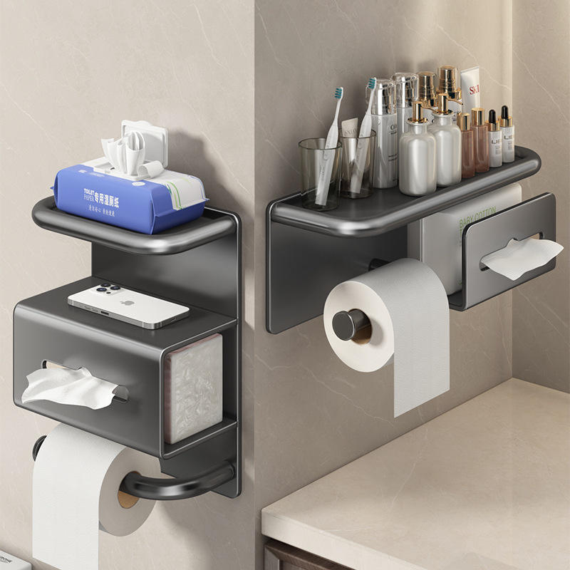 [ไม่ต้องใช้ตะปู] ที่ใส่กระดาษทิชชูสองชั้นสีเทา Gunmetal