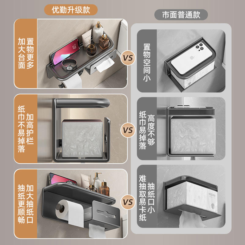 [ไม่ต้องใช้ตะปู] ที่ใส่กระดาษทิชชูแบบชั้นเดียวสีเทาปืน