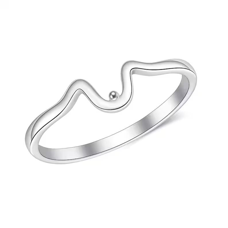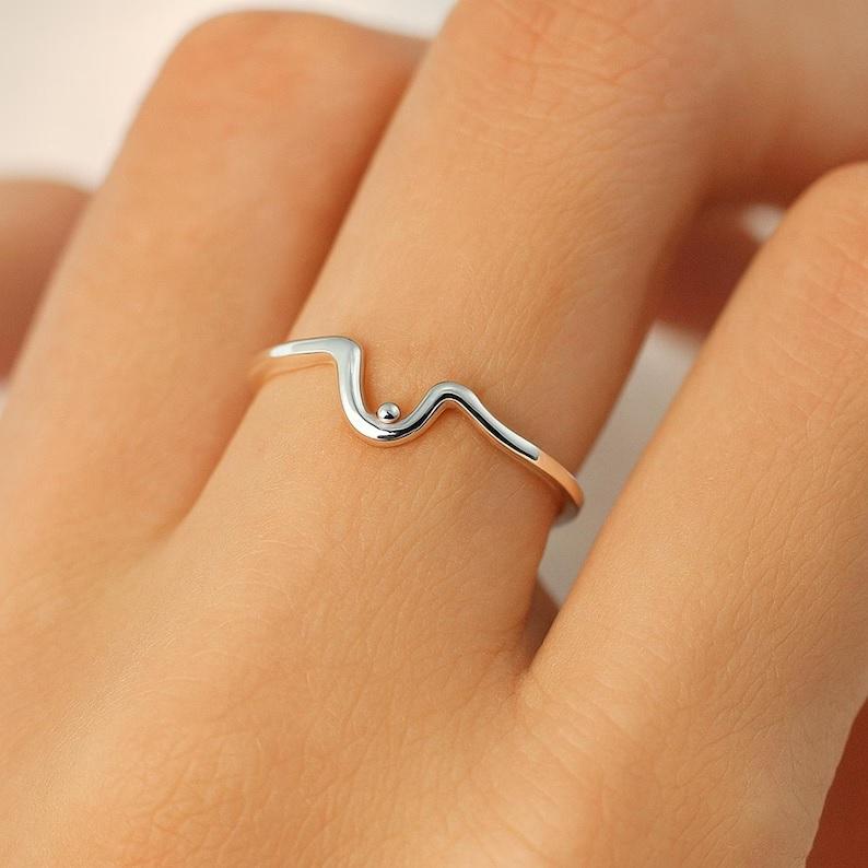 Minimalist Wave Ring for Women Dainty Adjustable Sterling Silver Stackable Beach Jewelry