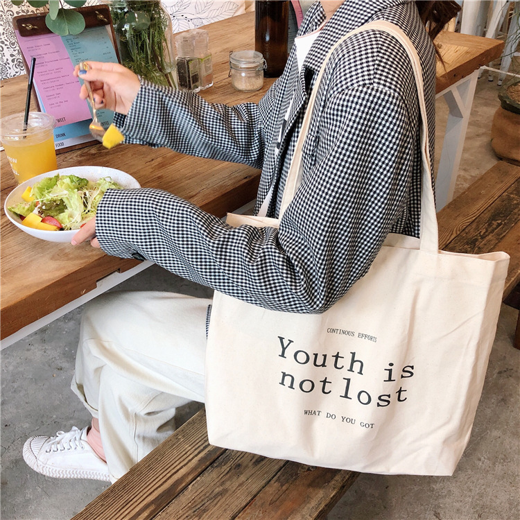 กาแฟสไตล์ตะวันตกแบบมินิมอลลิสต์ถุงผ้าแคนวาสสีธรรมชาติพิมพ์ลายอาหารโลโก้ตามสั่ง