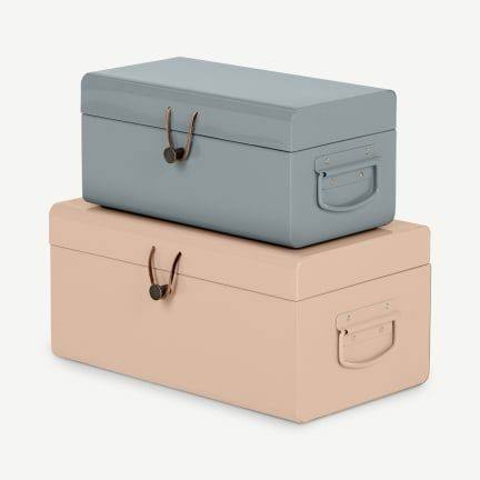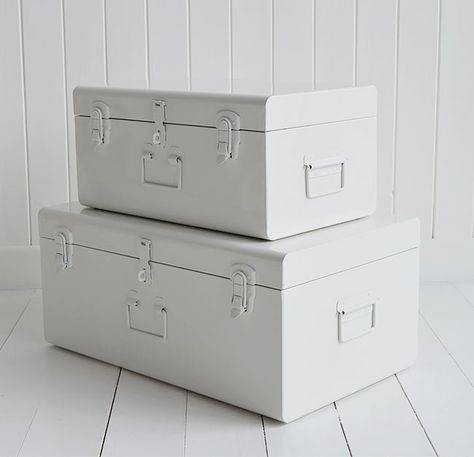 ตู้เก็บของโลหะสีขาวสไตล์มินิมอลพร้อมหูจับด้านข้าง กล่องจัดระเบียบแบบมั่นคงสำหรับตกแต่งภายในที่ทันสมัย