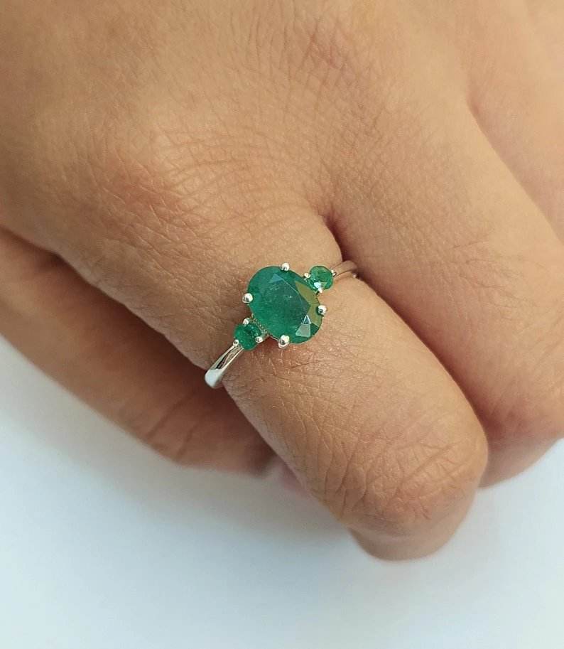 แหวนหมั้นแต่งงานทำจากเงินสเตอร์ลิง925แบบมินิมอลของผู้หญิงแหวนมรกตประดับเพชรไข่มุกเงินแท้เครื่องประดับวันวาเลนไทน์