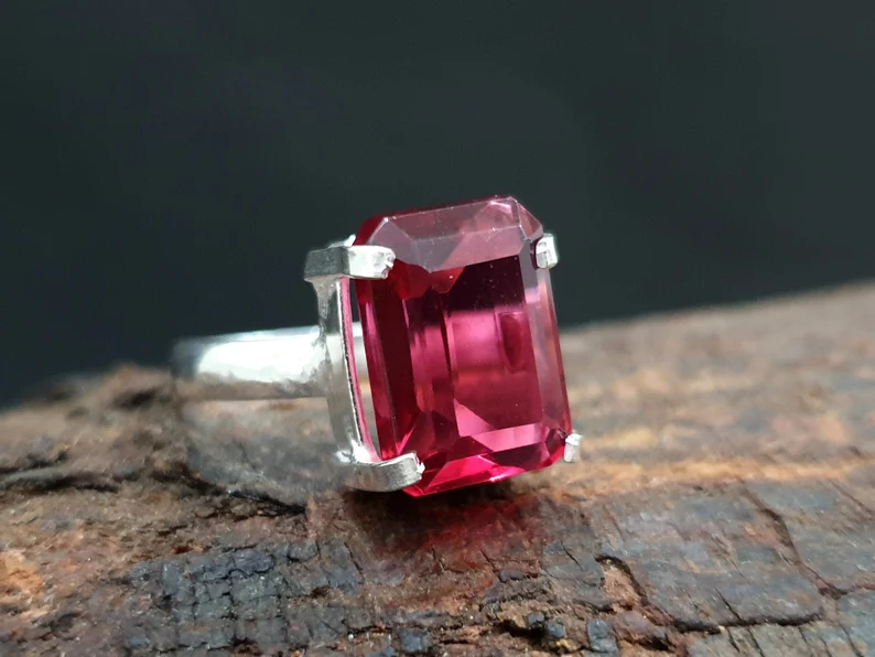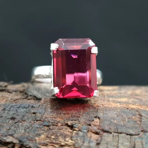 แหวนแต่งงานแหวนหมั้นแบบมินิมอลสำหรับผู้หญิงแหวนแก้วสีแดงทรงแปดเหลี่ยมตัดเพชร925แข็งวงเงินแท้18K ทอง14K สำหรับปาร์ตี้