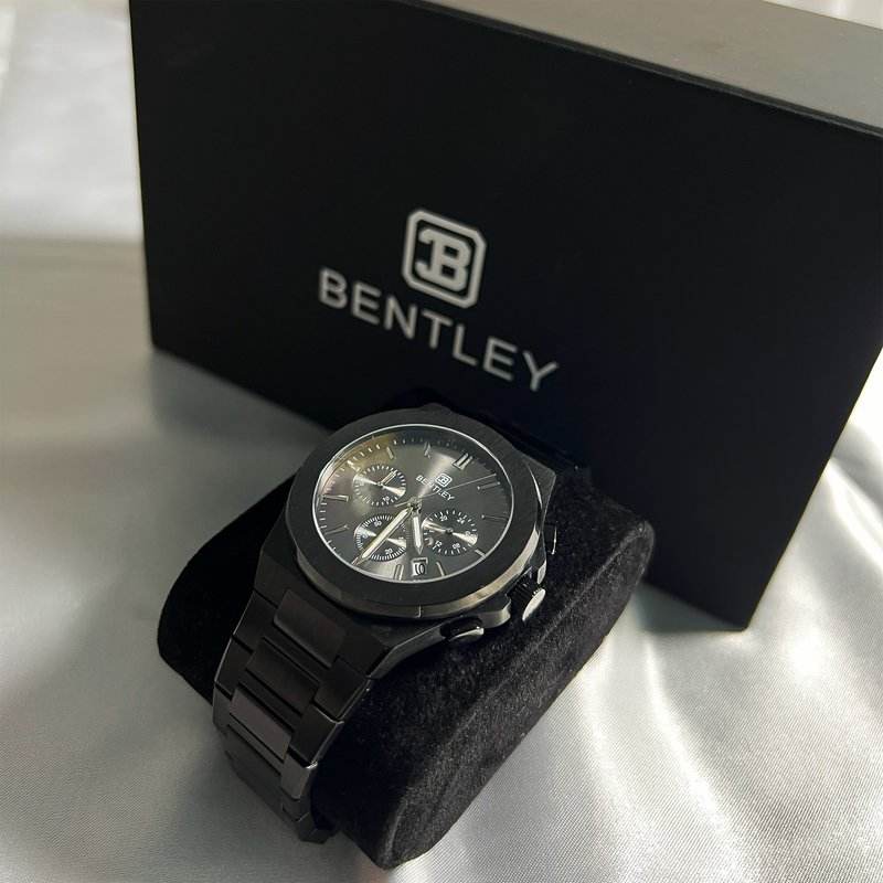 นาฬิกาหน้าปัดสีดำแบบมินิมอลพร้อมตัวเรือน42.5มม. และสายสเตนเลสทรงเรียว