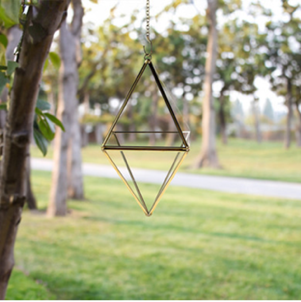 กรอบทองแดงทรงเรขาคณิตพีระมิดที่เรียบง่ายว่างเปล่าหรือมีการเน้นดอกไม้เหมาะสำหรับการตกแต่งที่แขวนมีจำหน่ายในราคาขายส่ง