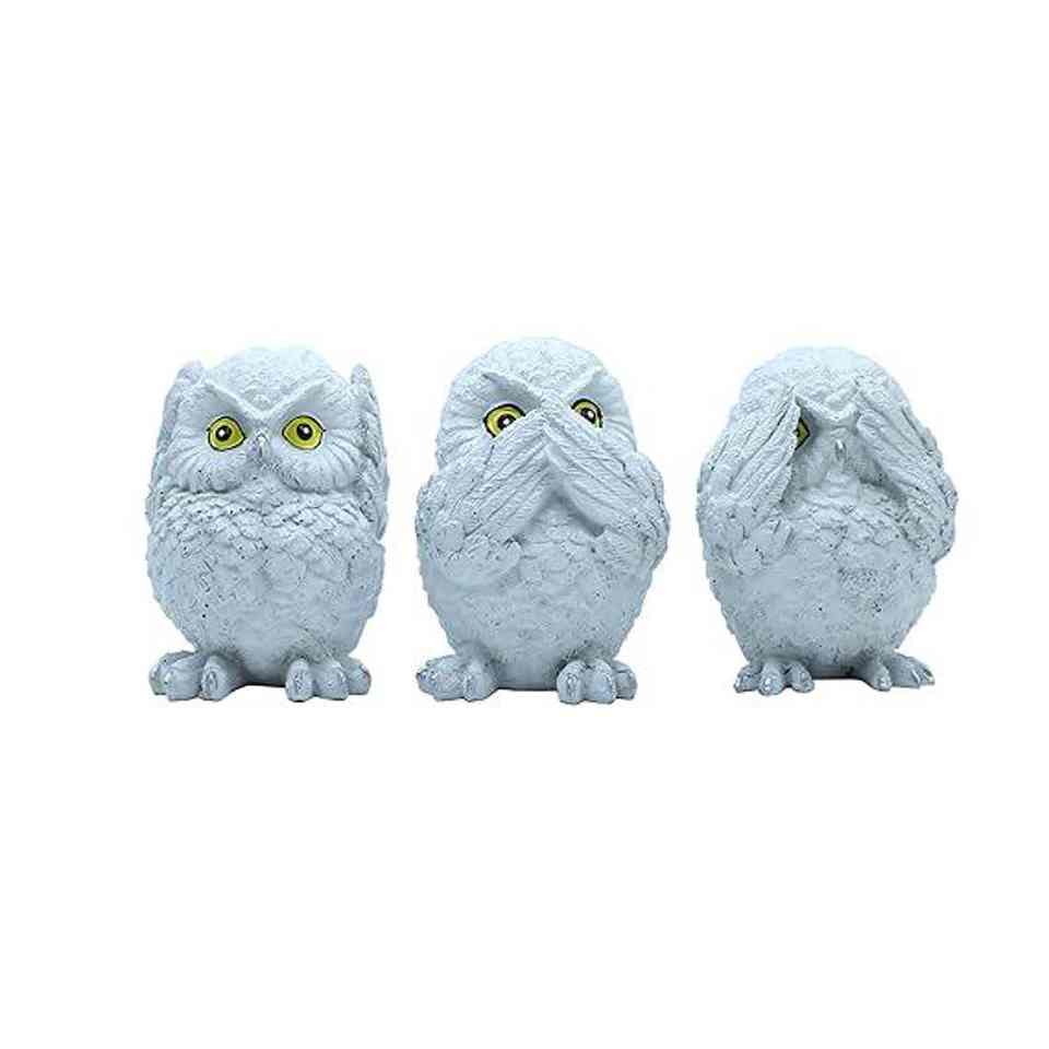 งานประติมากรรมเรซิ่นลายหินสไตล์มินิมอล ของตกแต่งบ้าน ชั้นวางของ โต๊ะทำงาน ของประดับตกแต่งบ้าน รูปนกฮูกสามตัว งานแฮนด์เมด