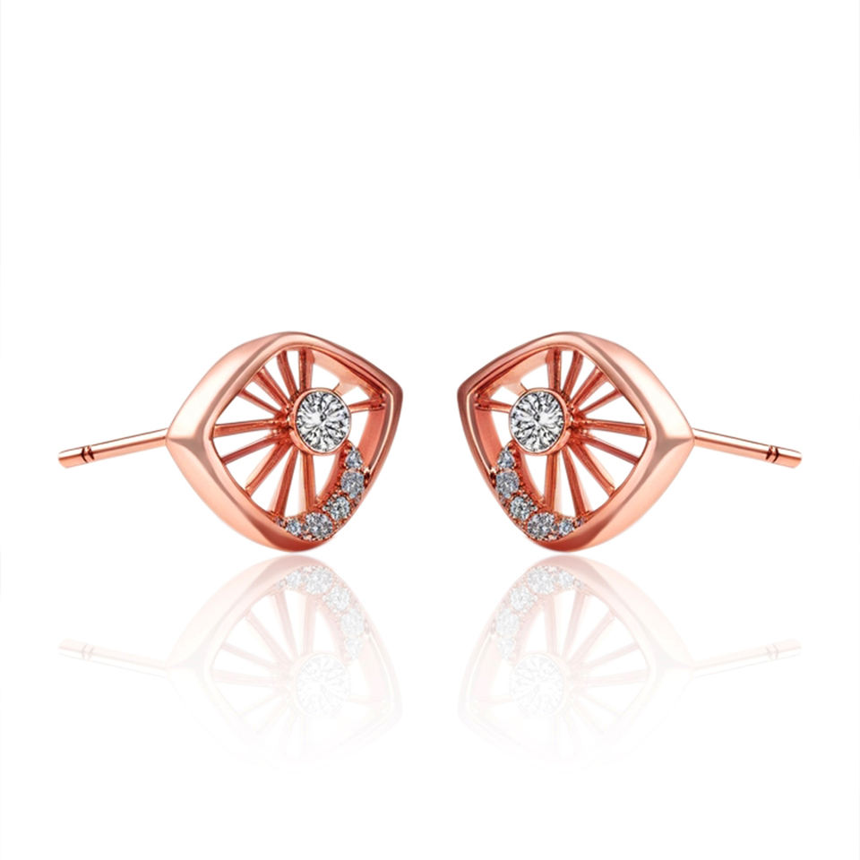 Minimalistic 14K Solid Rose Gold Eye Shape Stud Earring With Natural Diamond Manufacture