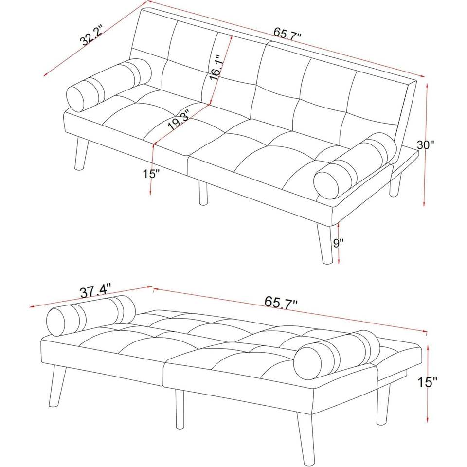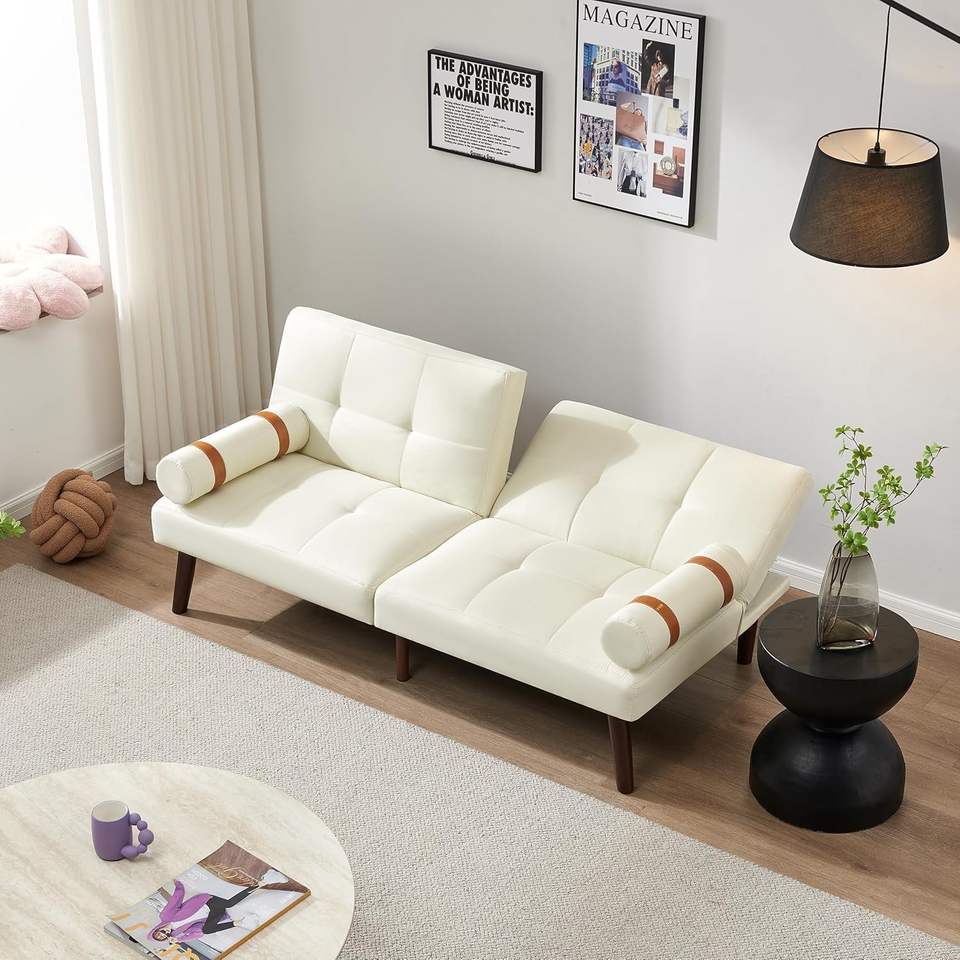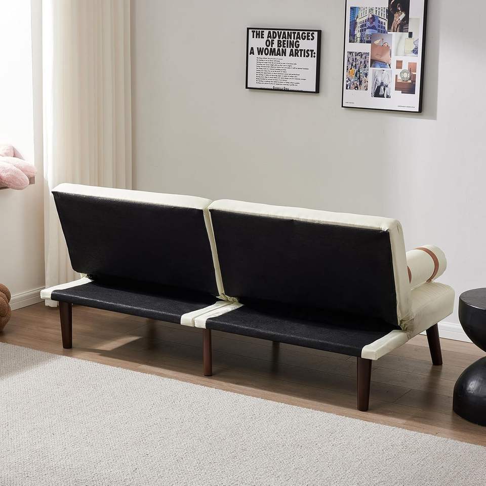 Minimally Designed Compact Convertible Futon Sofa Bed Armrests Comfortable Linen Sleeper for Small Spaces Offices Apartments