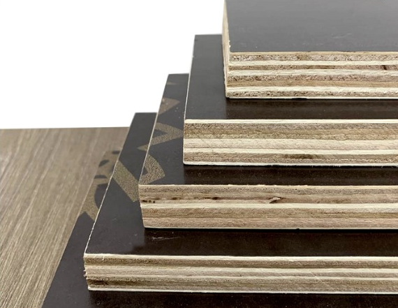 แกนไม้สนเกรด A2ติดกาวสีดำ/น้ำตาลเคลือบฟิล์ม12 ~ 21มม. ออกแบบให้มีน้อยที่สุด