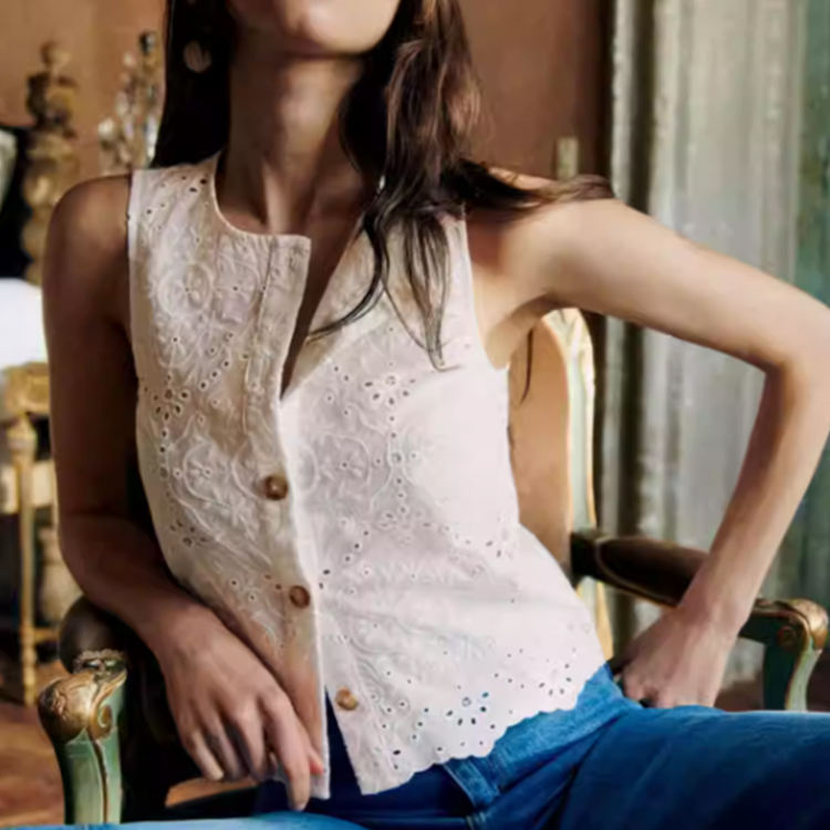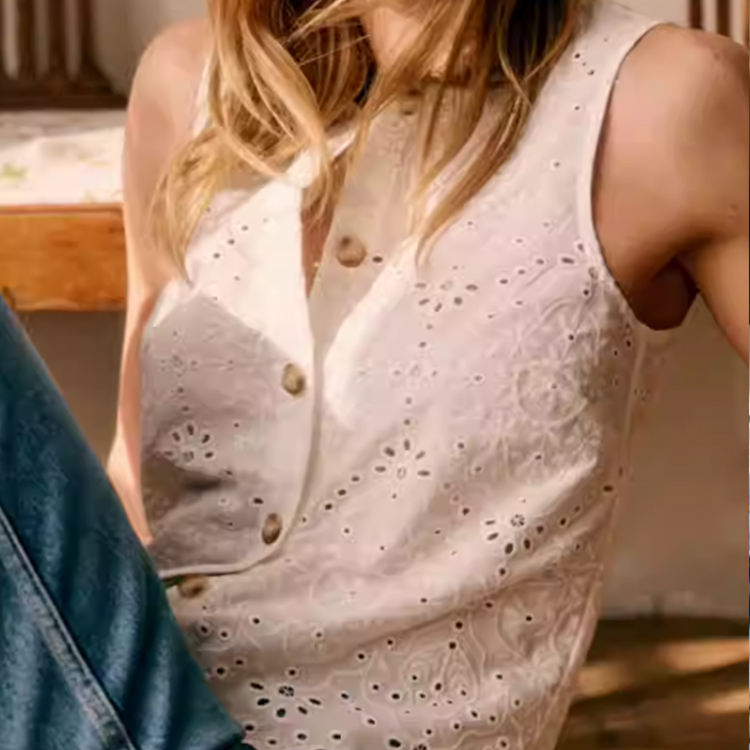 Minimum order quantity: Retro white round neck button-down sleeveless shirt custom linen breathable shirt