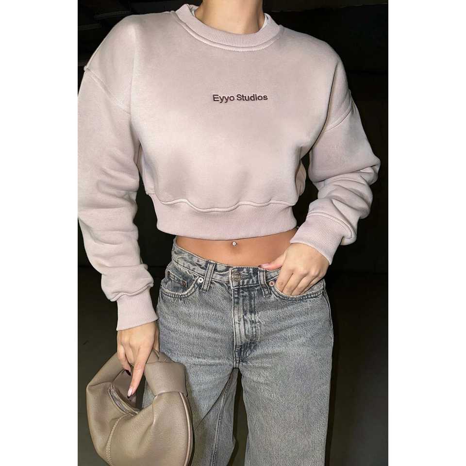 เสื้อครอปแขนยาวพิมพ์ลายมิงค์ ฟรอนท์ อีโยสำหรับผู้หญิง