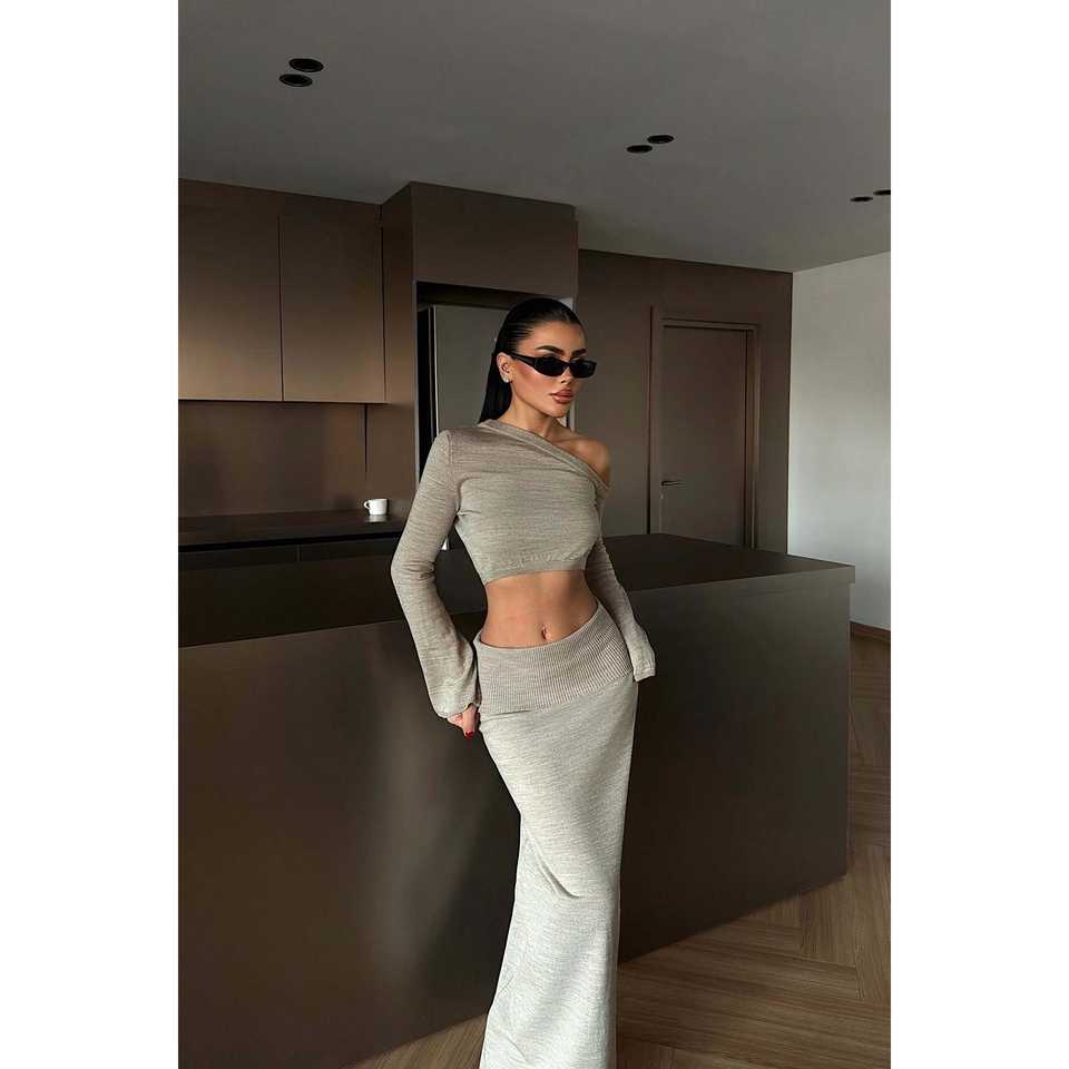 ชุดกระโปรงมิงค์ ฤดูหนาว/ฤดูใบไม้ร่วง ชุด 2 ชิ้น ทรงเข้ารูป ผ้าถัก เสื้อและกางเกงขาสั้น ไซส์ XL ความยาวเหนือเข่า สไตล์คลับ/ทางการ
