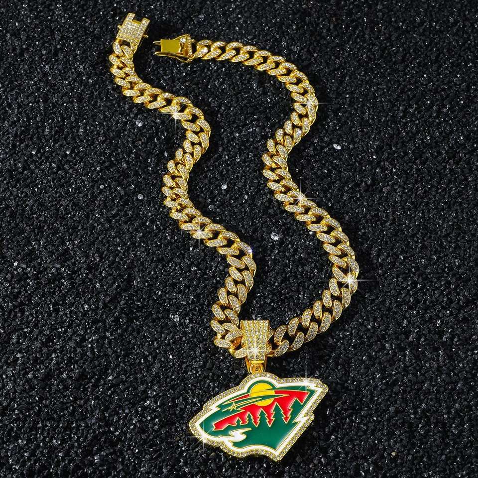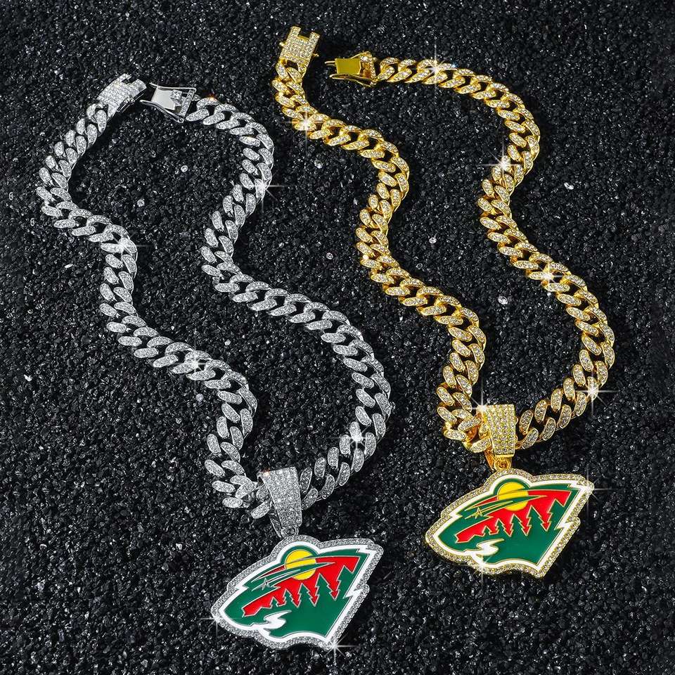 จี้รูปทรงโล่สไตล์ฮิปฮอป ชุบโรเดียมเงินแท้ ประดับเพชรโมอิสซาไนต์เต็มเม็ด รุ่น Minnesota Wilderness Championship สำหรับกีฬาฮอกกี้น้ำแข็ง