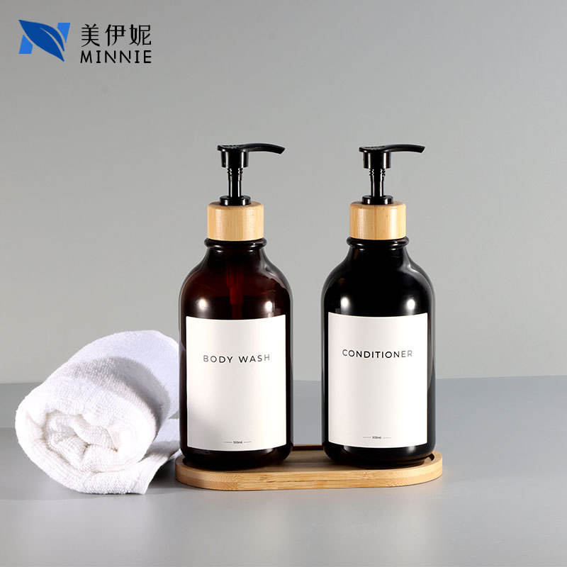 ขวดสบู่เหลวมินนี่ 500 มล. แบบหัวปั๊ม ขวดใส่ครีมนวดผม ฝาไม้ สำหรับการดูแลประจำวัน