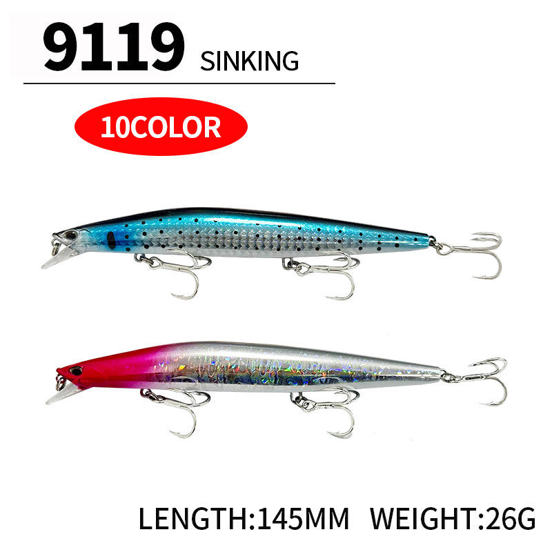 เหยื่อปลอมแบบจมน้ำ ขนาด 145 มม./26 กรัม ทำจากวัสดุ ABS แข็ง พร้อมตะขอเกี่ยว สำหรับตกปลาทะเล เช่น ปลากะพง ปลาทราย ปลาเทราต์ และปลานิล