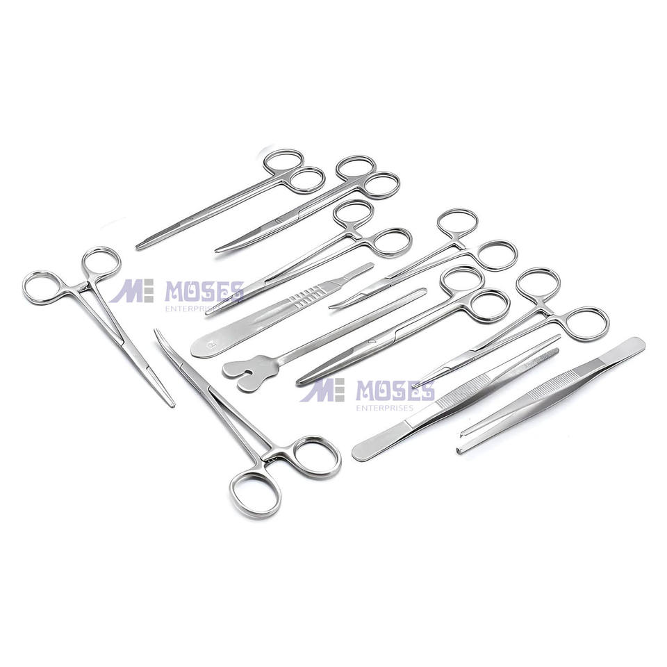 ชุดเครื่องมือผ่าตัดเล็กๆน้อยๆพร้อมกล่องกรรไกรสแตนเลสชุดคีมและเข็มสำหรับนักเรียนพยาบาลและมืออาชีพ
