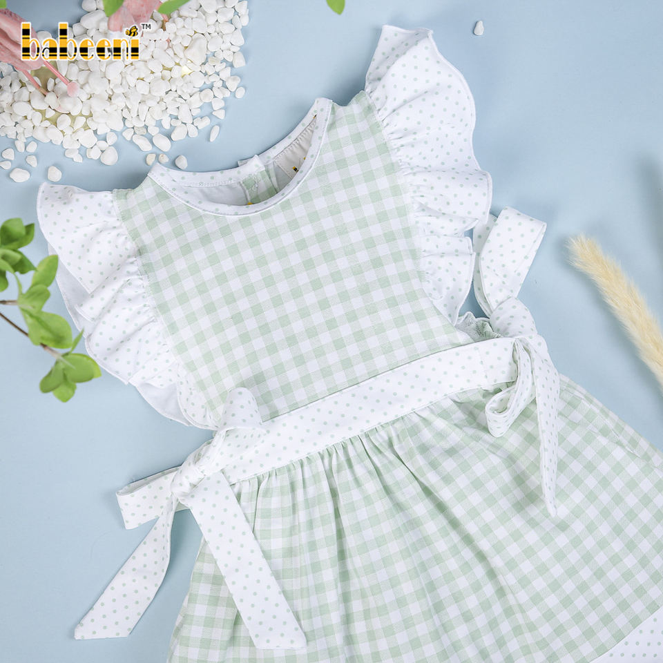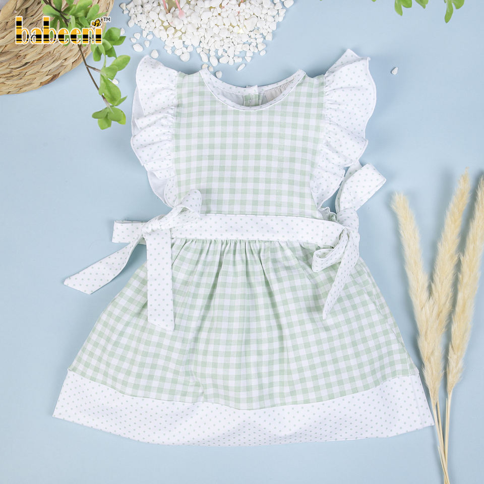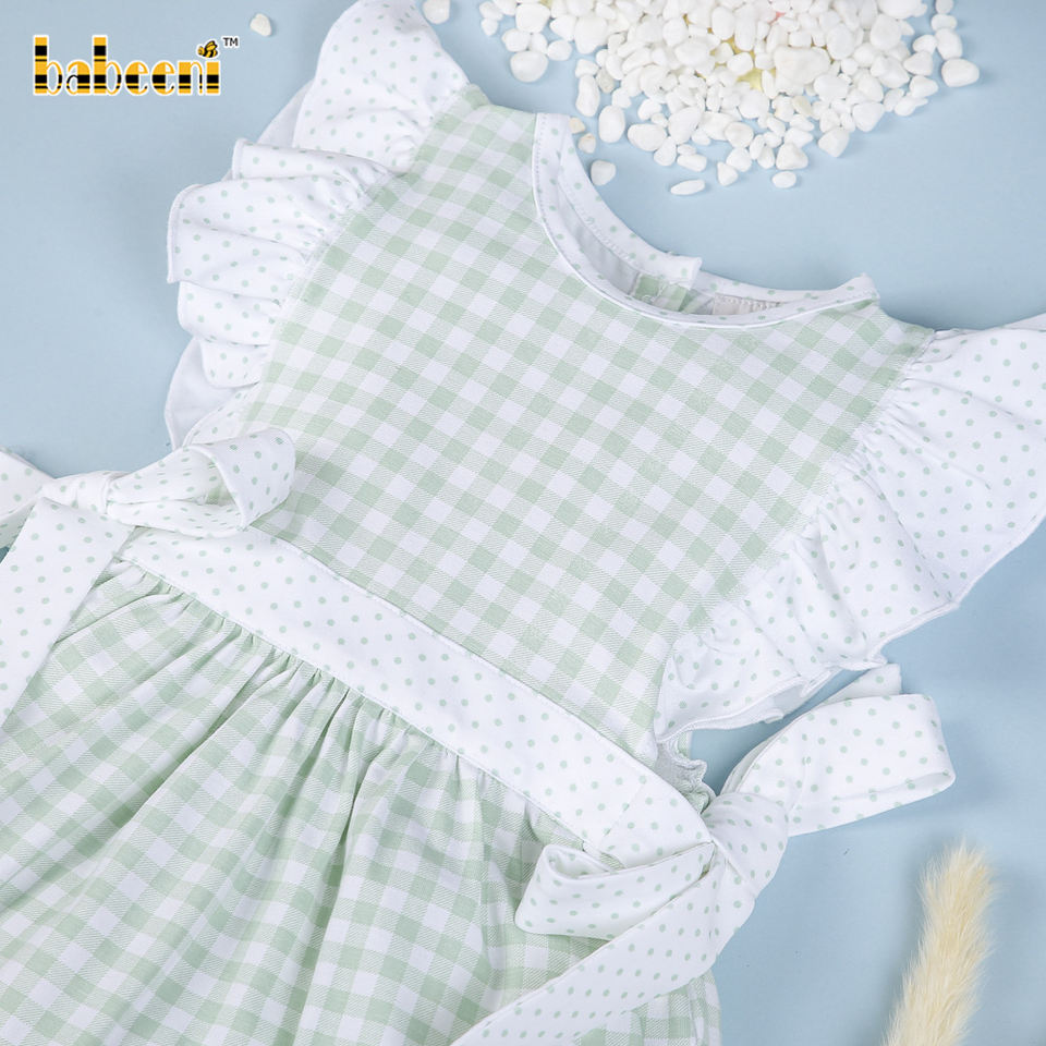 Mint check baby plain dress