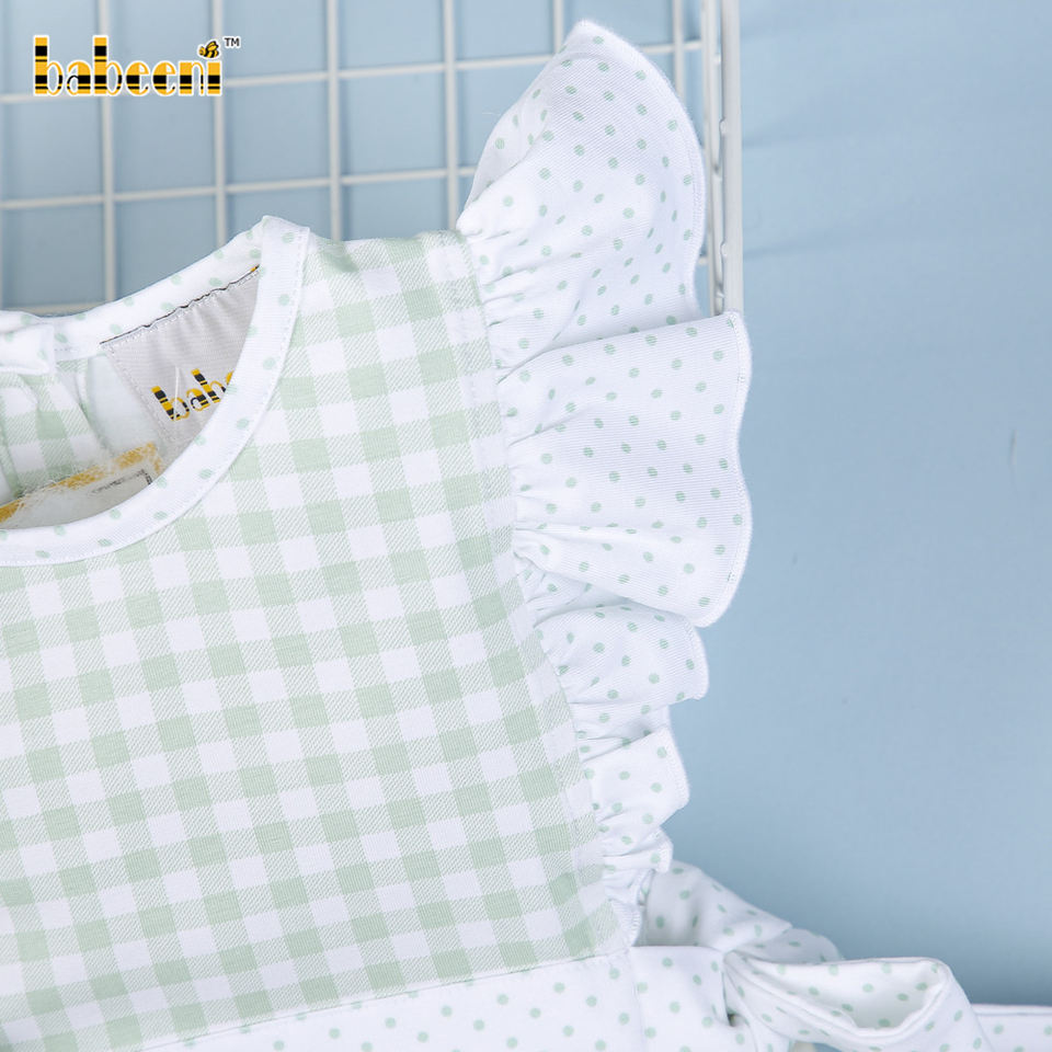 ชุดเดรสเด็กผู้หญิงผ้าฝ้าย 100% ลายเรียบ สไตล์บับเบิ้ล สำหรับฤดูร้อน รุ่น Mint Check Long Summer รับผลิตแบบ OEM ODM ขายส่ง รหัสสินค้า BB2644