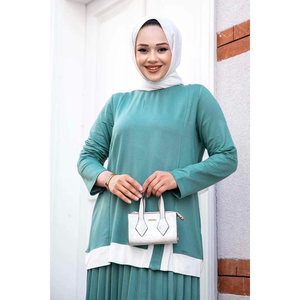 ชุดฮิญาบ2ชิ้นแบบผ่าลายมิ้นท์สำหรับเด็กผู้ชายทำจากผ้า