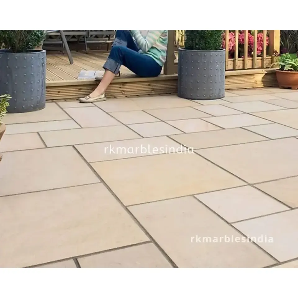 กระเบื้องบล็อกหินทรายสีเหลืองมิ้นท์ตกแต่งพื้นผิวตามธรรมชาติ