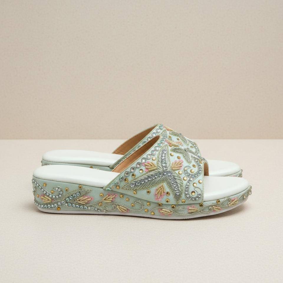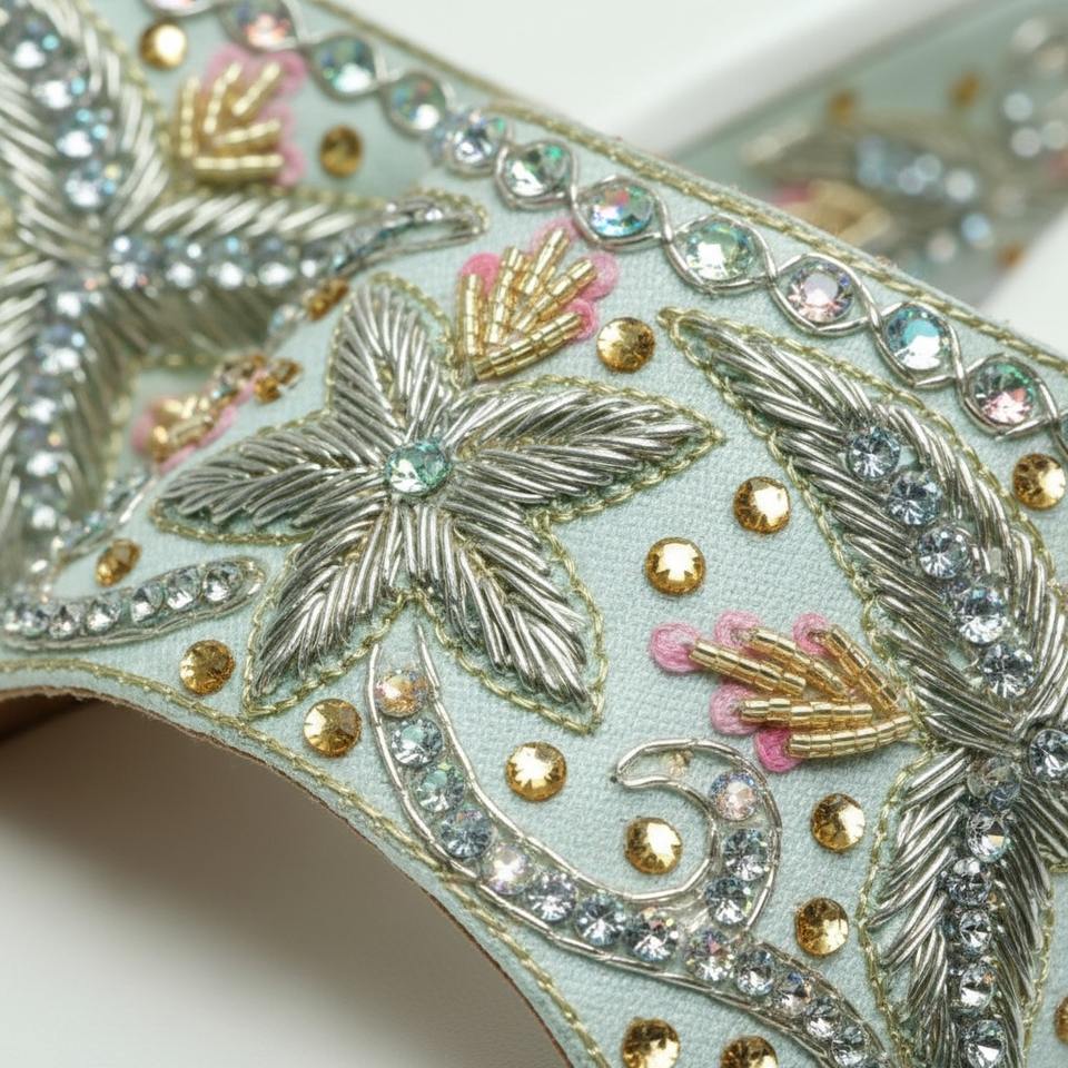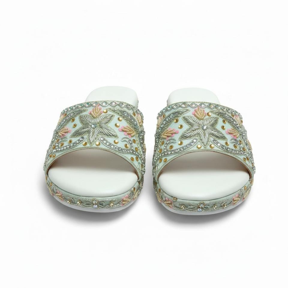 รองเท้าแตะปักลายสีเขียวมิ้นท์
