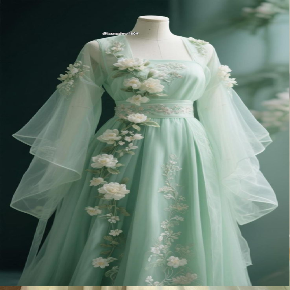 เดรสทรงเอไลน์แขนยาวลายดอกไม้สีเขียวมิ้นท์ ดีไซน์คลาสสิก จำหน่ายในราคาขายส่ง