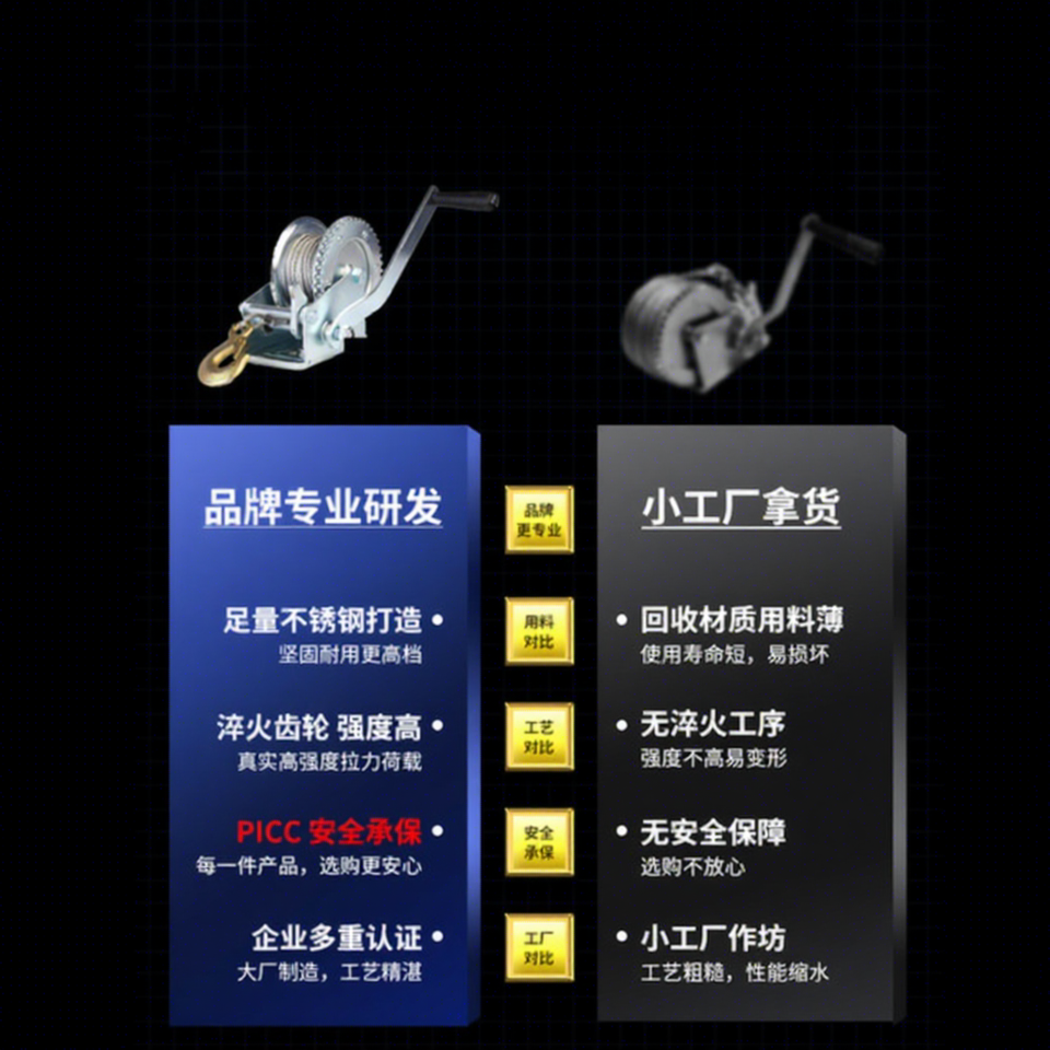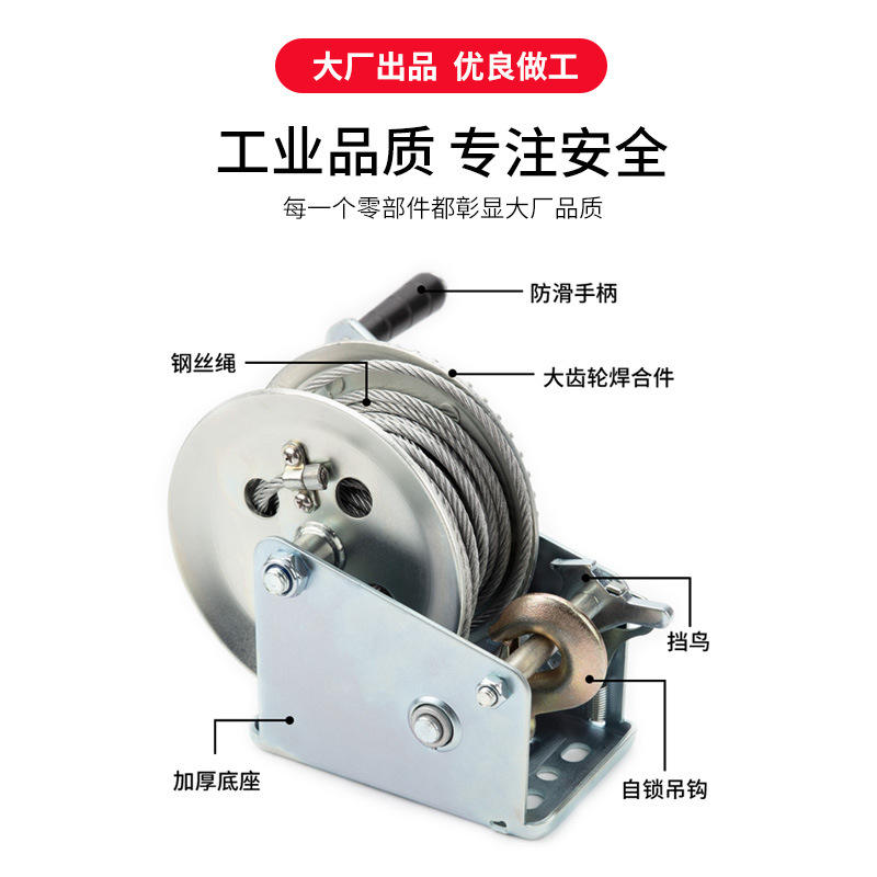 รอกมือหมุน Mintali BQC1600 รับน้ำหนัก 1600 ปอนด์ พร้อมเชือกสลิงขนาด 5 มม. ยาว 10 ม. ตะขอเกี่ยว แบบมือหมุน ป้องกันสนิม สีเทา