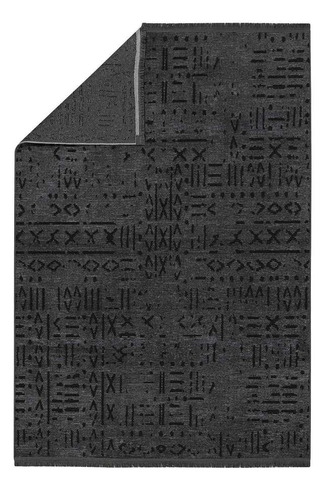 พรมเชนิลล์ลายเรขาคณิตสีแอนทราไซต์ รุ่น Mira ขนสั้น 7 มม. ซักได้ กันลื่น เป็นมิตรกับสิ่งแวดล้อม และสัตว์เลี้ยง สำหรับปูพื้นบ้าน