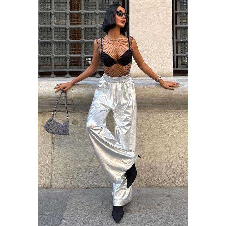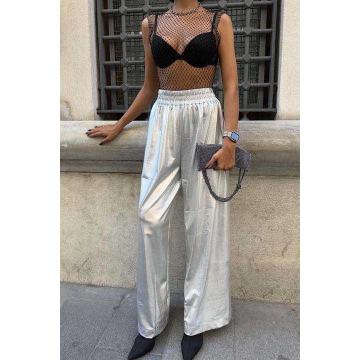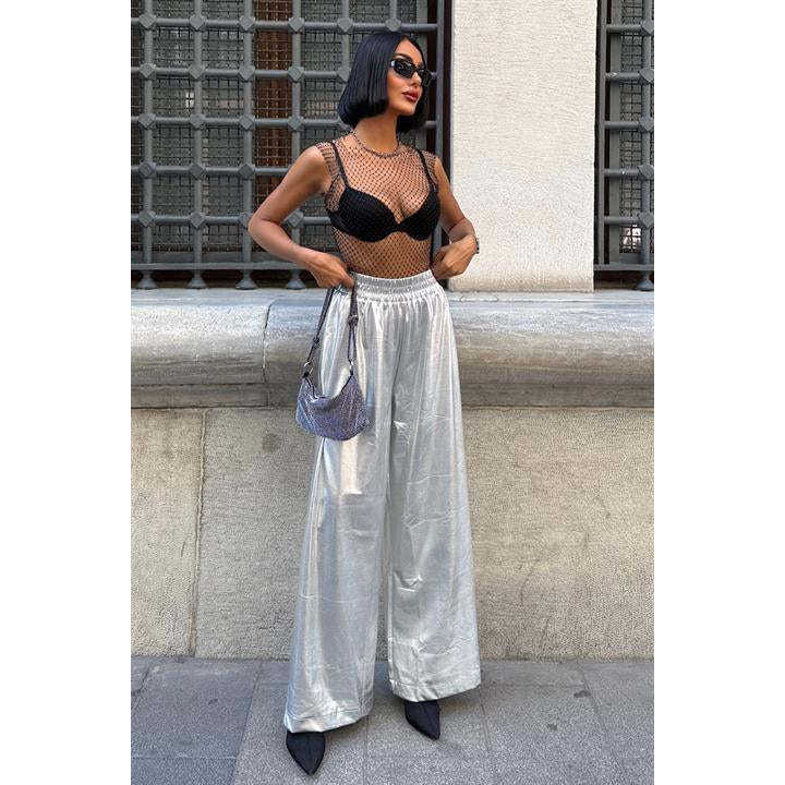 กางเกงมิราเคิลเลค พลาซโซ 0072 กางเกงขากว้างเอวสูงผ้าซาตินระบายอากาศได้ดี