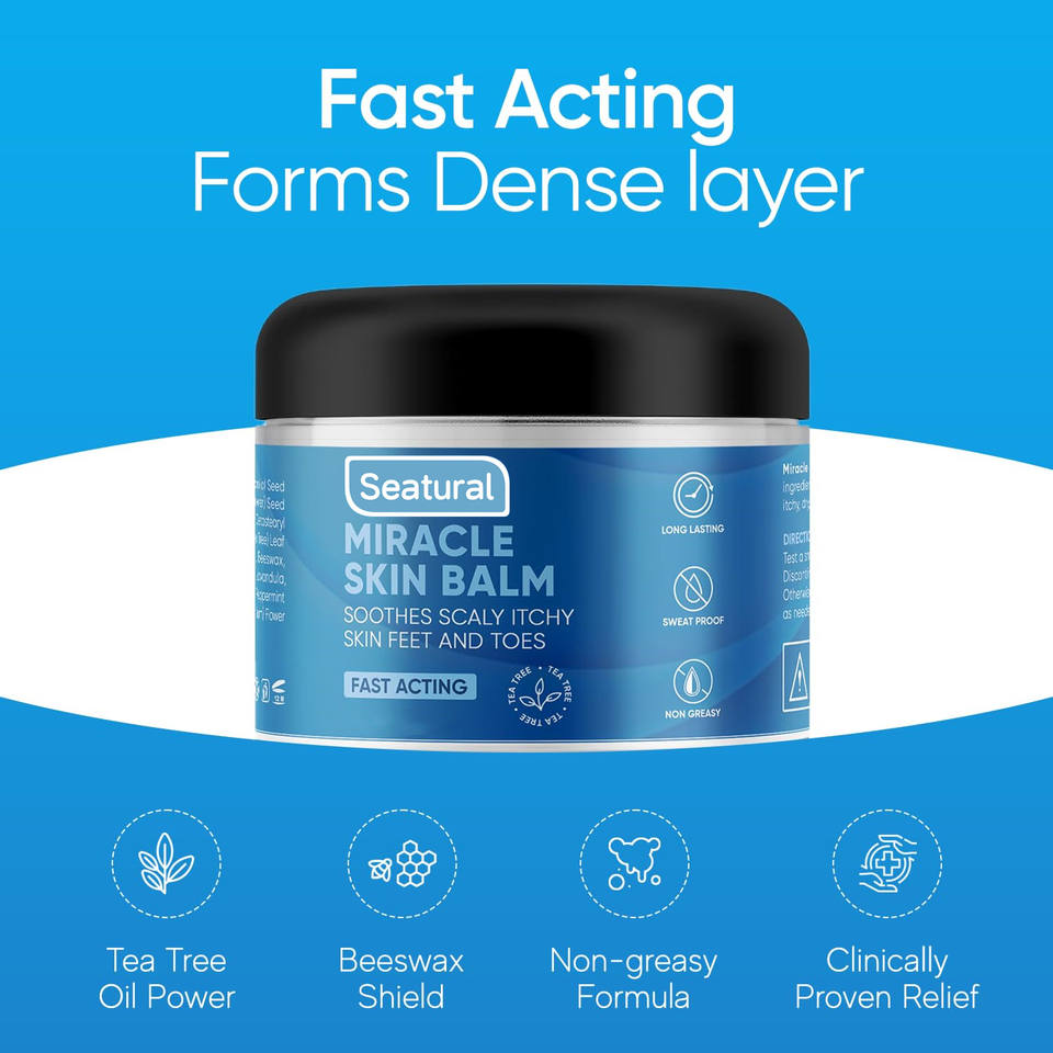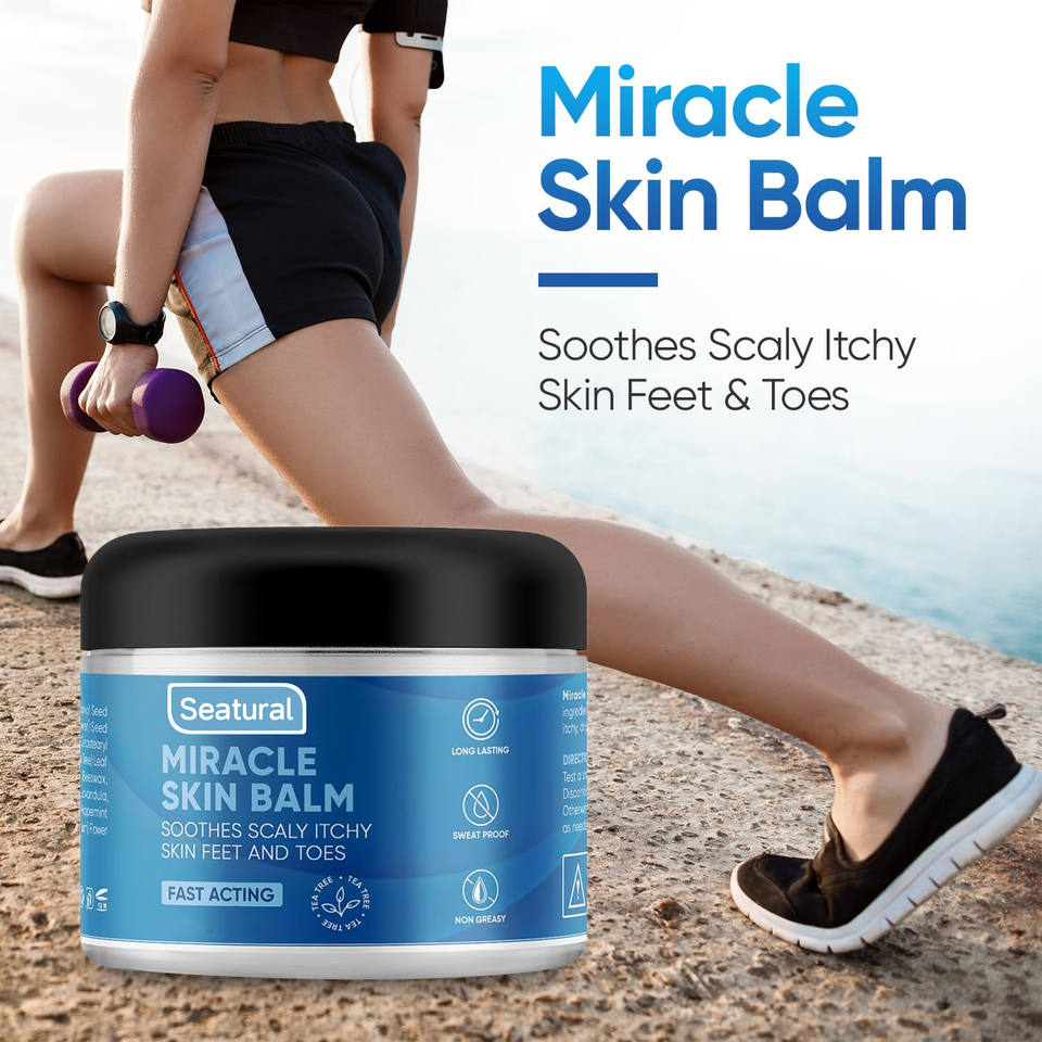มิราเคิล สกิน บาล์ม - บรรเทาอาการผิวแห้ง คัน ลอกเป็นขุย บริเวณเท้า ลำตัว นิ้วเท้า ด้วยทีทรีออยล์และยูคาลิปตัส ช่วยบรรเทาอาการปวดอย่างรวดเร็วและเพิ่มความชุ่มชื้น
