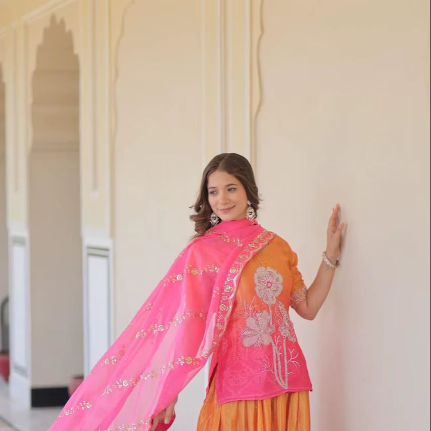 Product Name:Chinon Top & Sharara With Dupatta