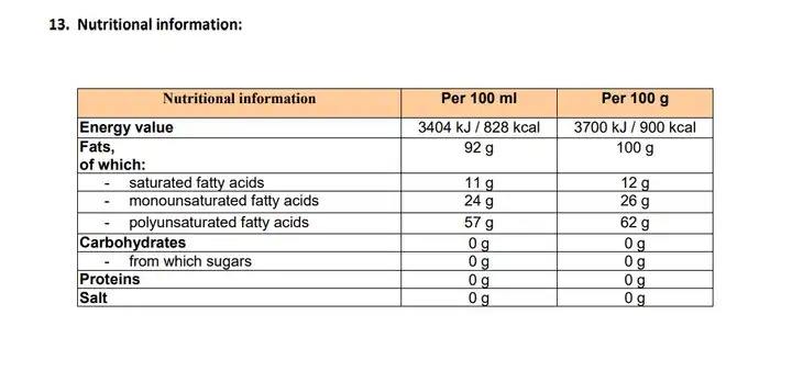 เนื้อหา:น้ำมันดอกทานตะวัน