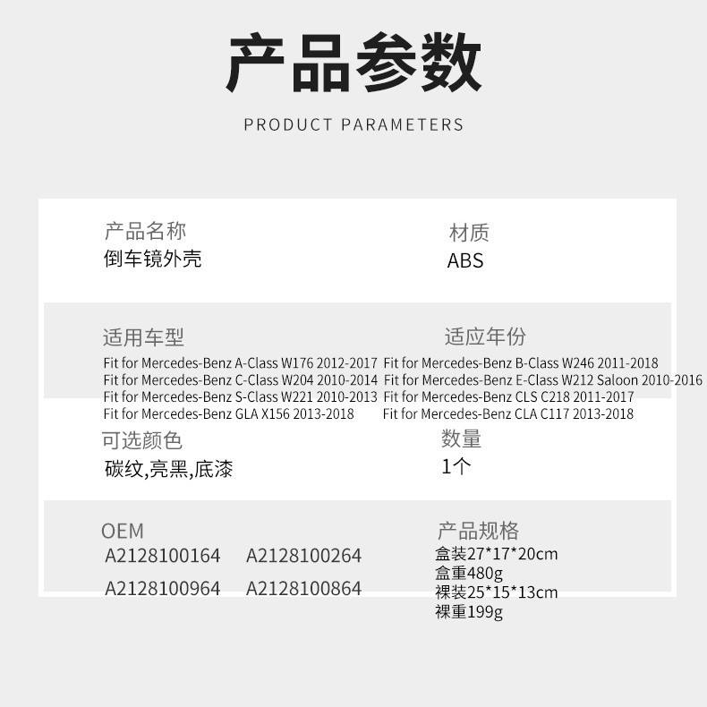 ฝาครอบกระจกสำหรับ Mercedes-Benz S-Class E-Class C-Class W204 W212 W221คาร์บอนไฟเบอร์ ABS ครบชุด