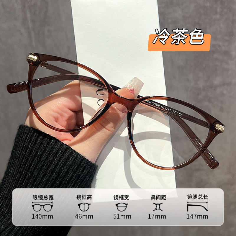 แว่นตาป้องกันแสงสีฟ้าทรงแคทอายสำหรับผู้หญิง รุ่น 10708 ขนาดกลาง เลนส์ PC ผลิตที่เมืองตันหยาง