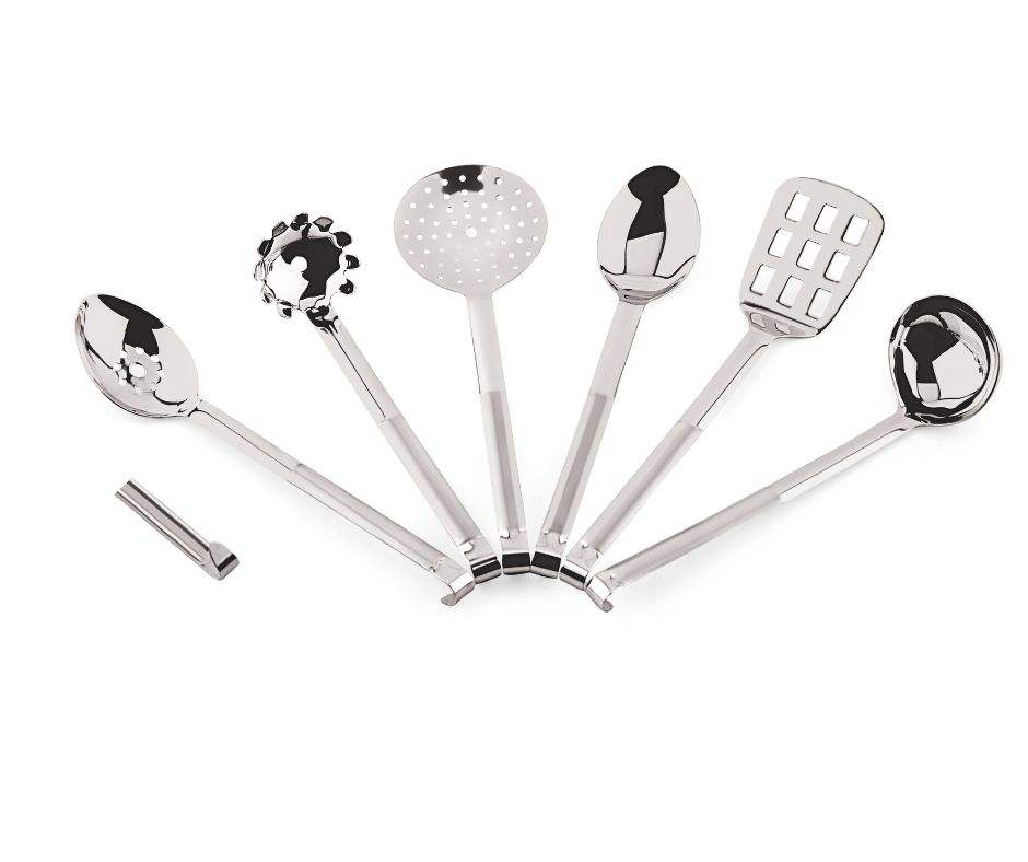 ชุดอุปกรณ์ครัวสแตนเลสขัดเงา 6 ชิ้น พร้อมด้ามจับตามหลักสรีรศาสตร์และหัวอเนกประสงค์