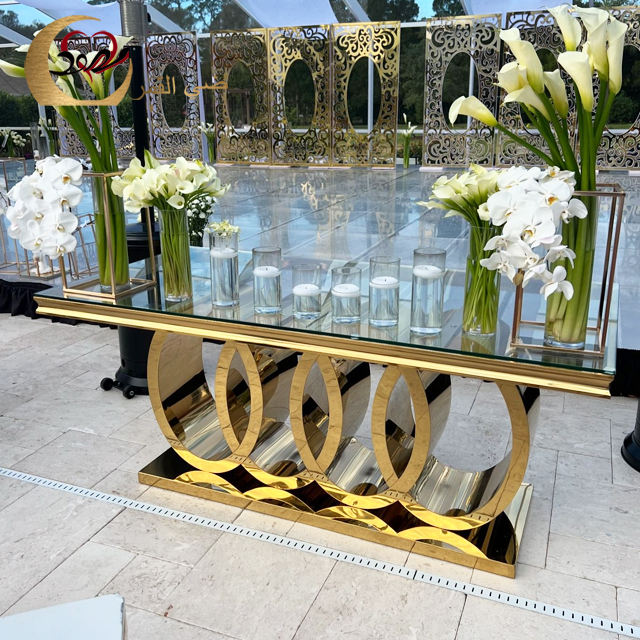 โต๊ะอาหารสแตนเลสกระจกสีทอง12ที่นั่งสุดหรู