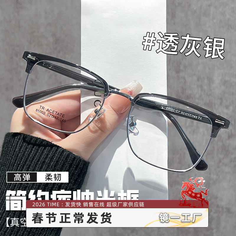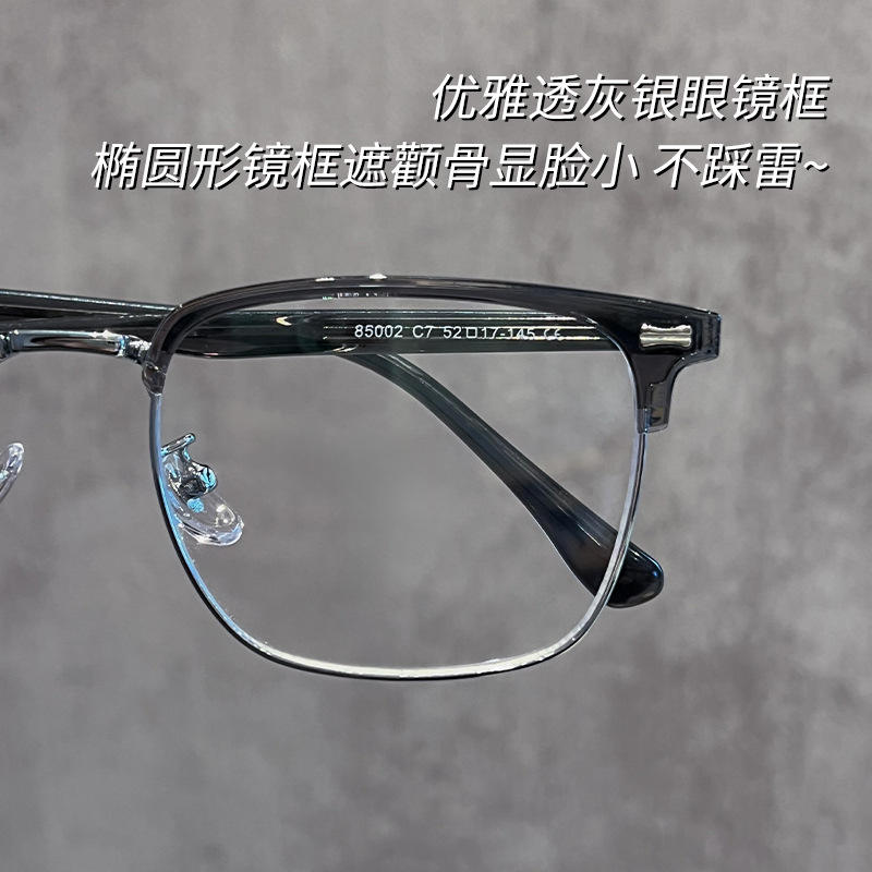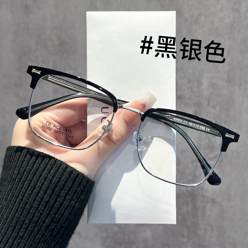 แว่นตาครึ่งกรอบสี่เหลี่ยมกระจกสำหรับผู้หญิง TR acetate 85002น้ำหนักเบาสีเงินใสสีเทา