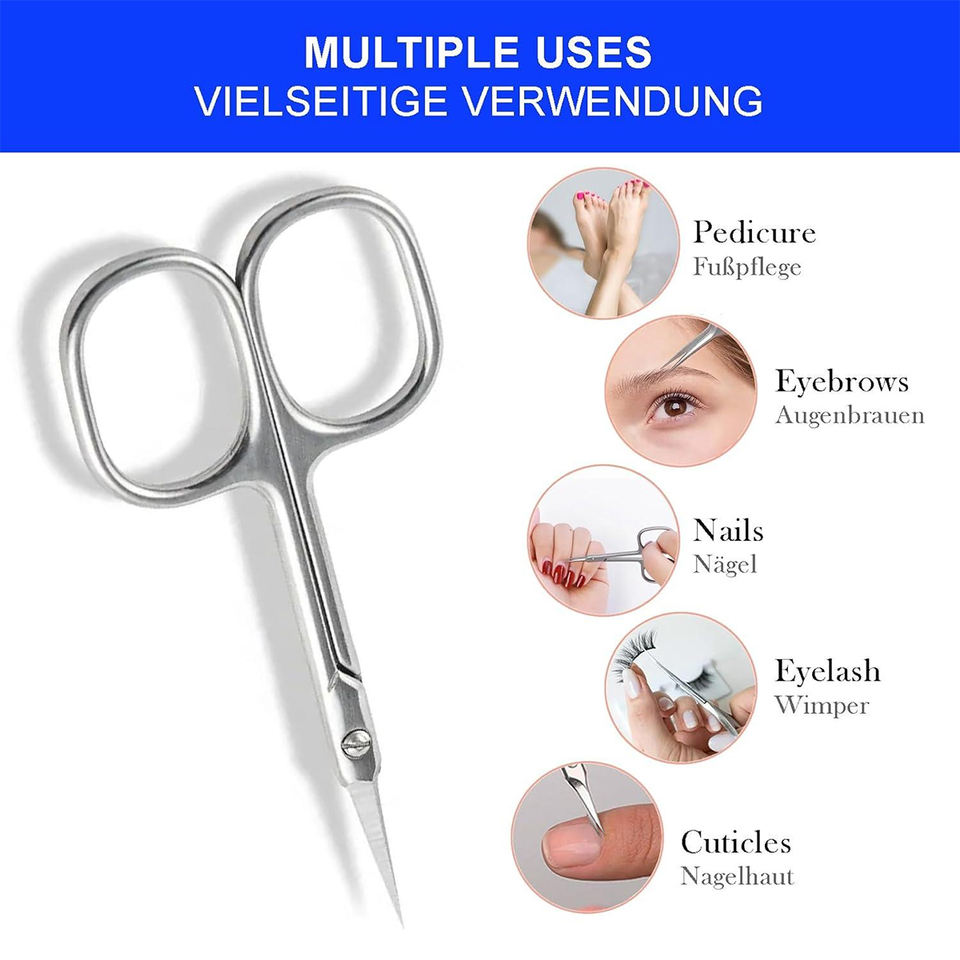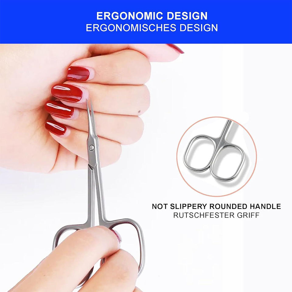 กรรไกรตัดหนังกำพร้าสแตนเลสโค้งมนขัดเงา 9.4 ซม. สำหรับใช้ในบ้านและร้านเสริมสวย