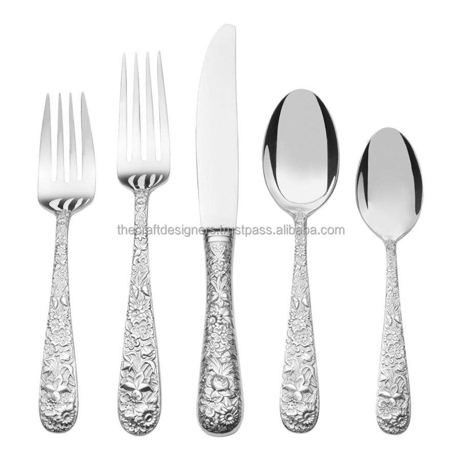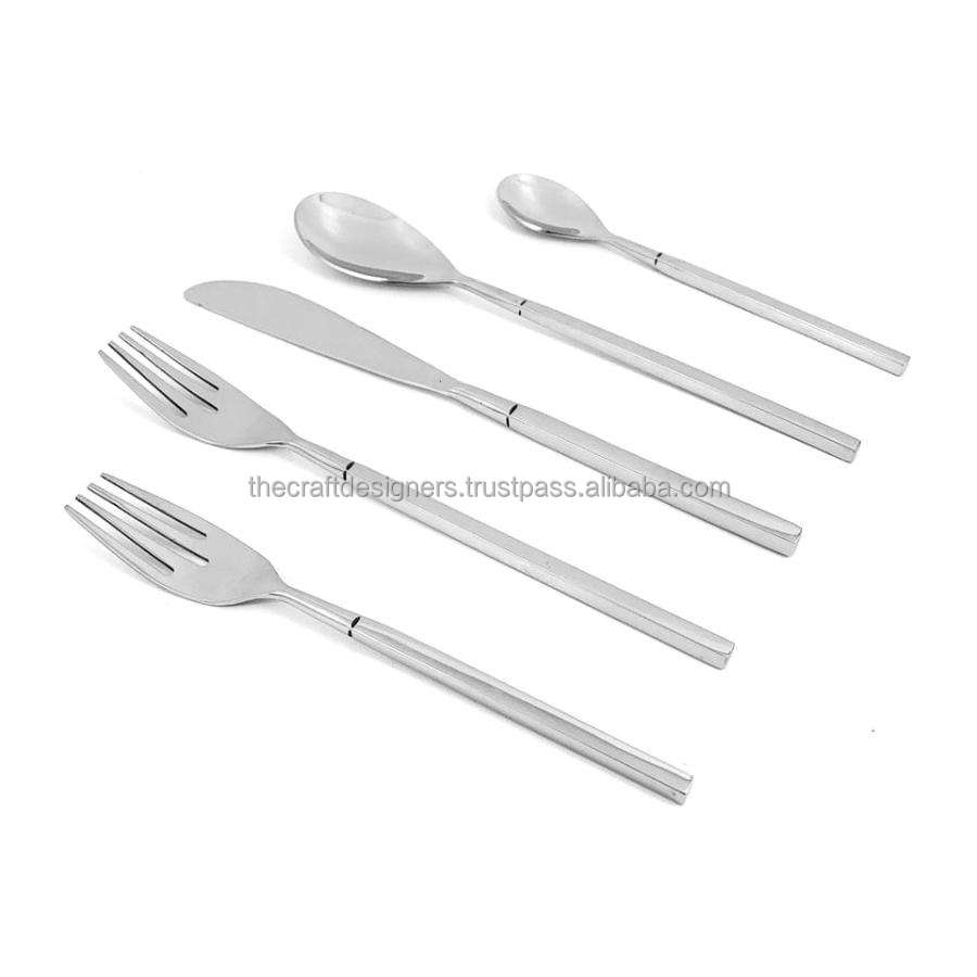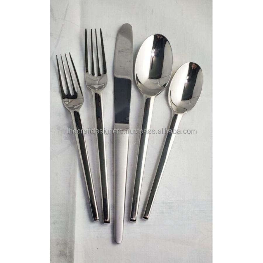 ชุดช้อนส้อมสเตนเลสสตีลขัดเงา 5 ชิ้น สไตล์เกาหลี ชุดเครื่องเงินสำหรับโรงแรม ร้านอาหาร อุปกรณ์บนโต๊ะอาหาร