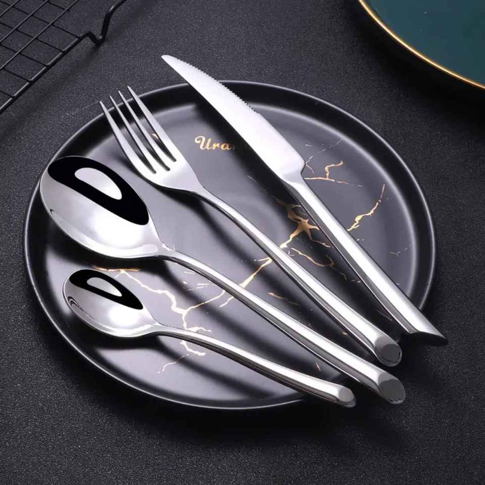ชุดช้อนส้อมสแตนเลสขัดเงาแบบกระจก ดีไซน์ด้ามจับสวยงาม ชุดช้อนส้อมดีไซน์สร้างสรรค์ ชุดช้อนส้อมคุณภาพสูง ชุดช้อนส้อมหรูหรา