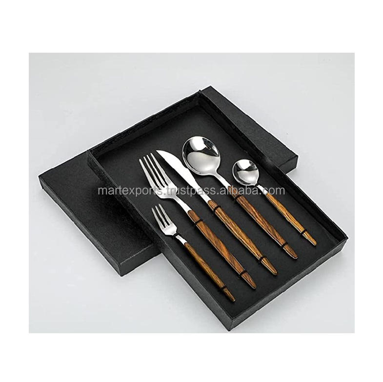 ชุดมีดสแตนเลสกระจกขัดเงาพร้อมช้อนส้อมและมีดสำหรับงานแต่งงานสุดหรูรับประทานอาหารและให้เป็นของขวัญ